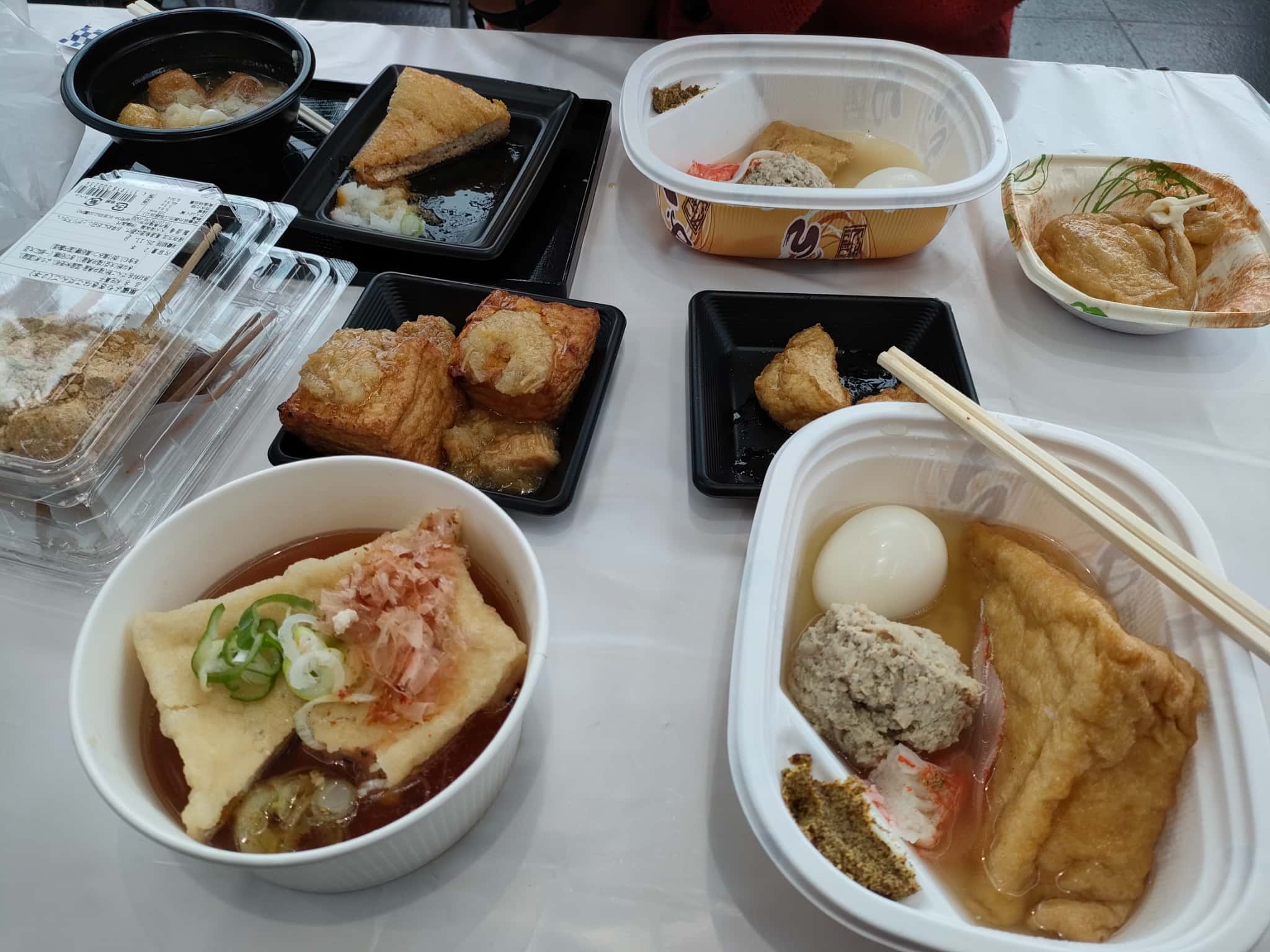 実は並ぶのには理由がありまして、油揚げの料理は、ブースで揚げるものが大半なので、いっぺんに作れる量が制限されてるのですw なので、切れ目にくると揚がるのを待ってないとダメで、そうなると、人気ブースの前には長い列ができるのです。さらに、ほとんどの提供物がその場で食べることを意識してますので、食事するスペースの確保も重要なので、意外とスタートダッシュはかかせないフェスなのですw
