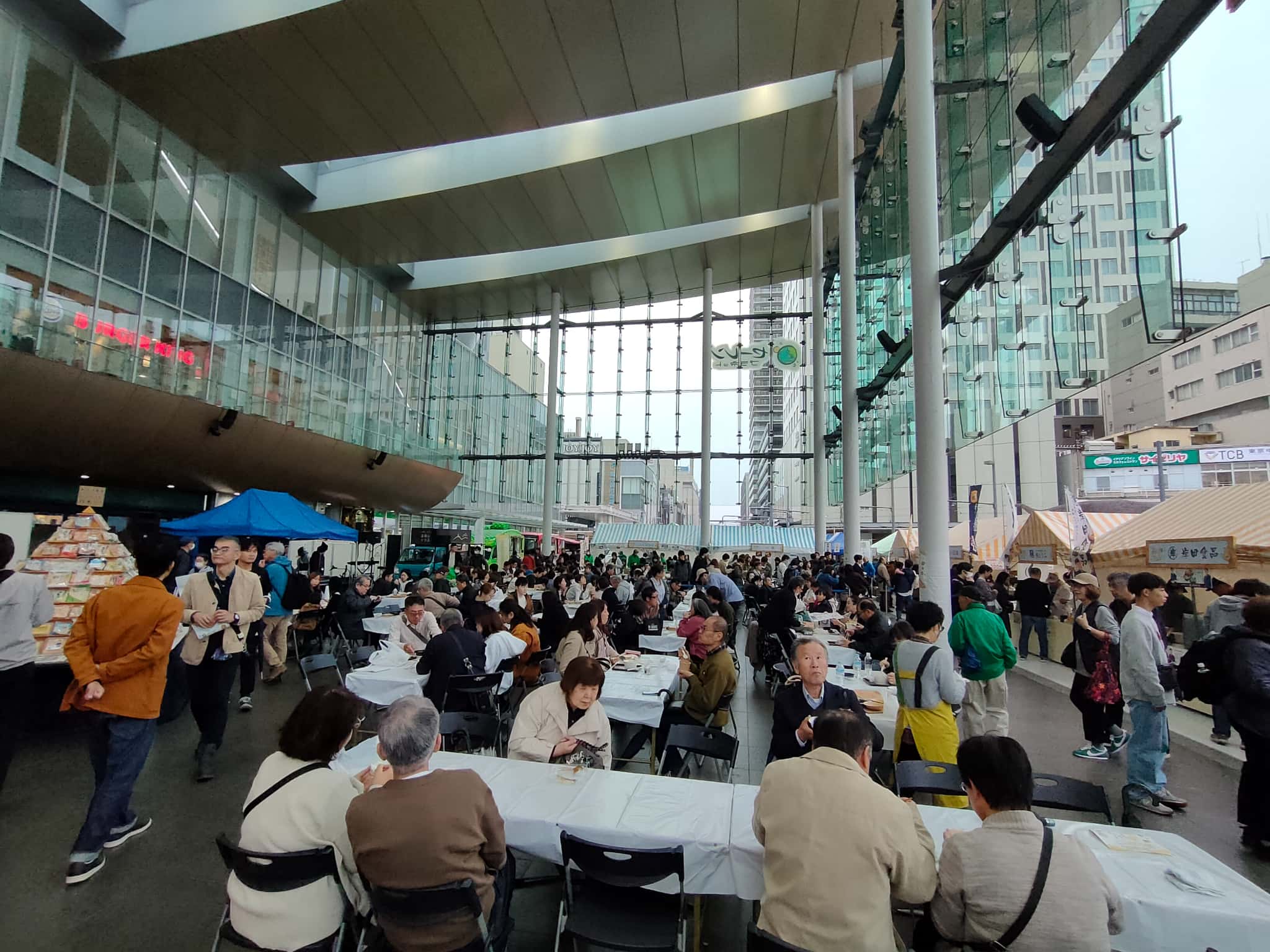 この開場時に並ぶ人たちは大半がお目当てのお店があって、そのお店の場所が確認できたら「まっすぐ」そこにいきますw また開場直後が飲食スペースの確保も楽なので、複数人でいくなら油揚げを買いに行く部隊と席確保の部隊と分かれることでよりスムーズなフェス参加ができますwww