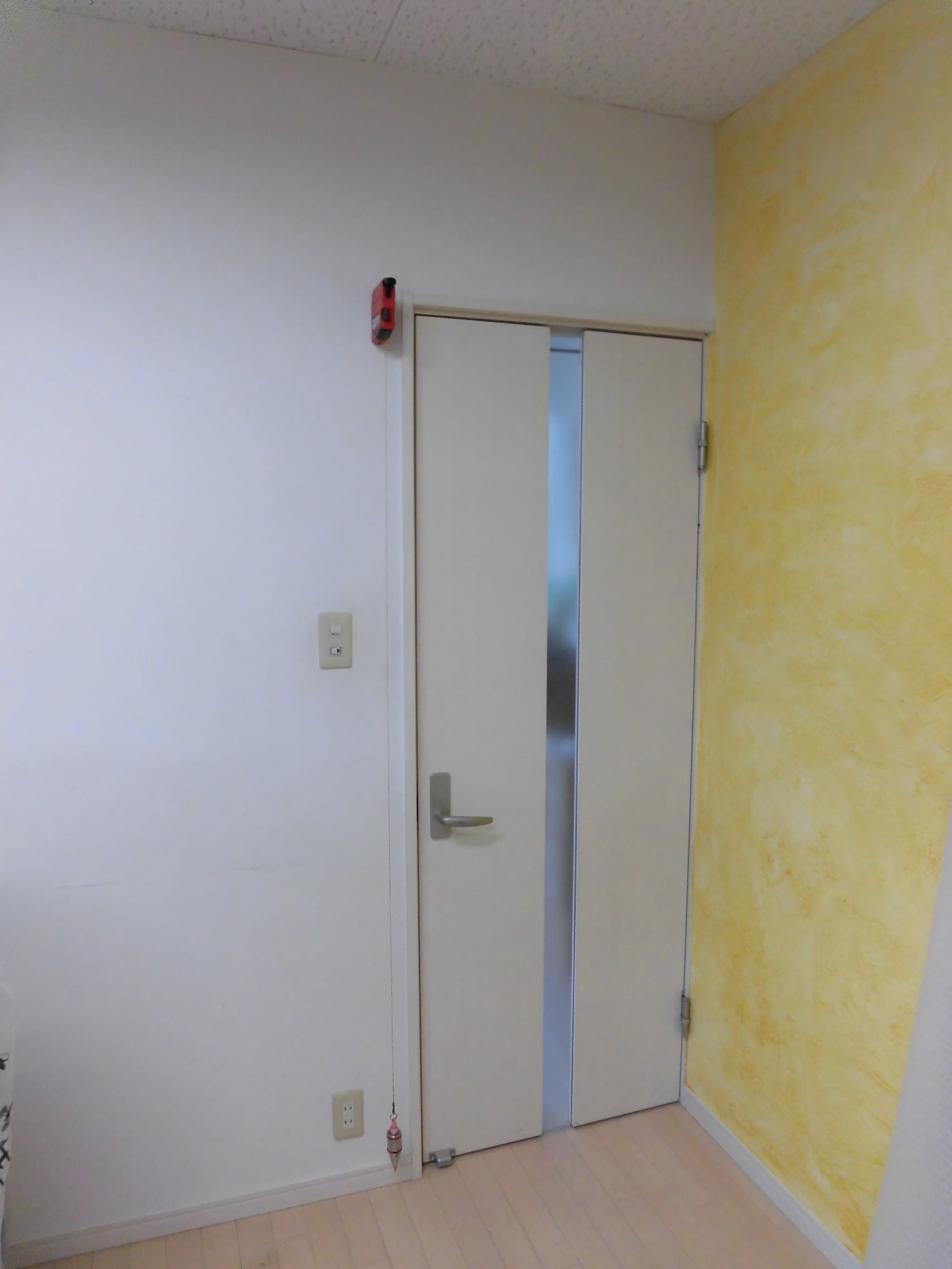 このとき、できるだけ柱がある部分に取り付けることが重要です。和室などで柱が見えているところなどは(これを真壁づくりといいます)、その柱とりつけることになります。洋室など柱がわからないところは、壁に取り付いているコンセントやスイッチの横などが柱のことが多いですし、画像のような場合、ドアなどの建具とスイッチやコンセントの間は、完璧に柱だと考えても大丈夫です。