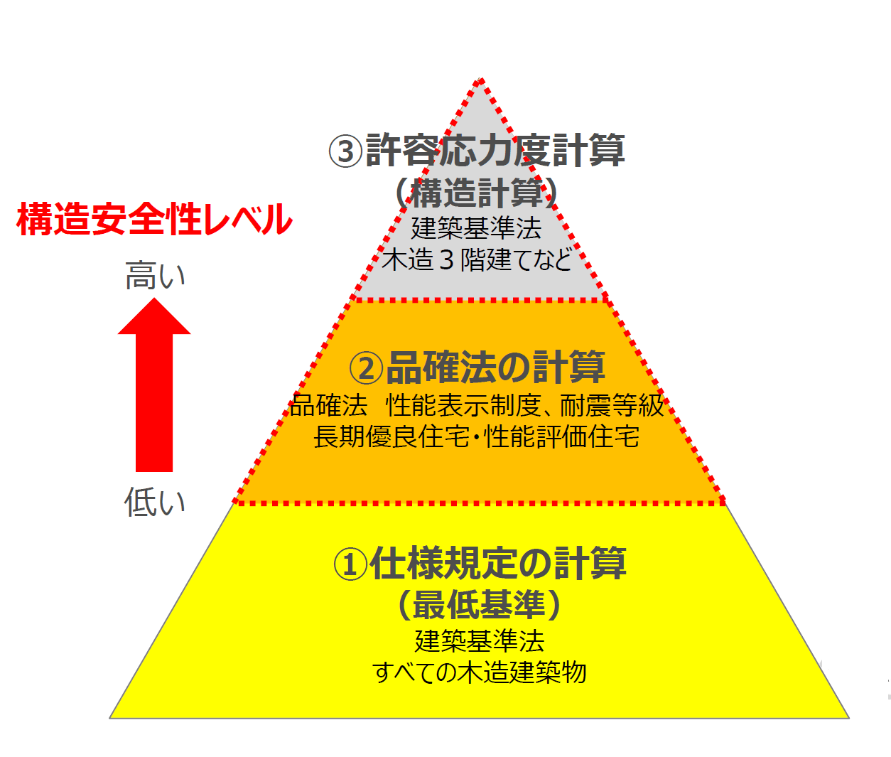 では、どのような審査で「構造安全性の評価」をするのでしょうか? それは①で示される「仕様規定の計算」といわれるものです。ここで求められる計算とは以下の通りです(2024年1月現在)。
