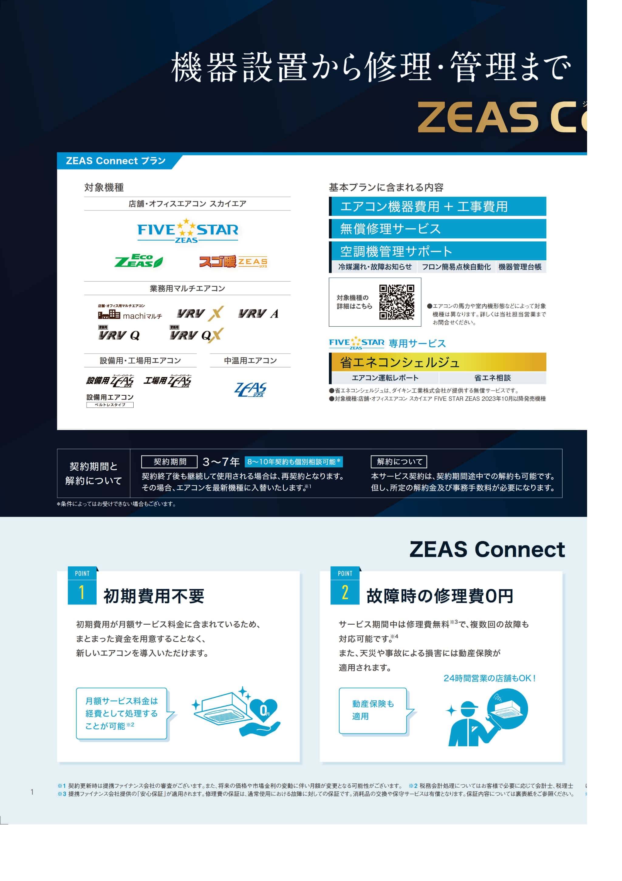 そんな中、2022年に「ダイキン工業株式会社」より空調設備に関しての導入費を「使用料」とするサブスクサービスが展開されはじめました。この暑さに対応するために、ここにきて再注目されているサービスです。それが「ZEAS Connect」というワンパッケージ定額サービスです。