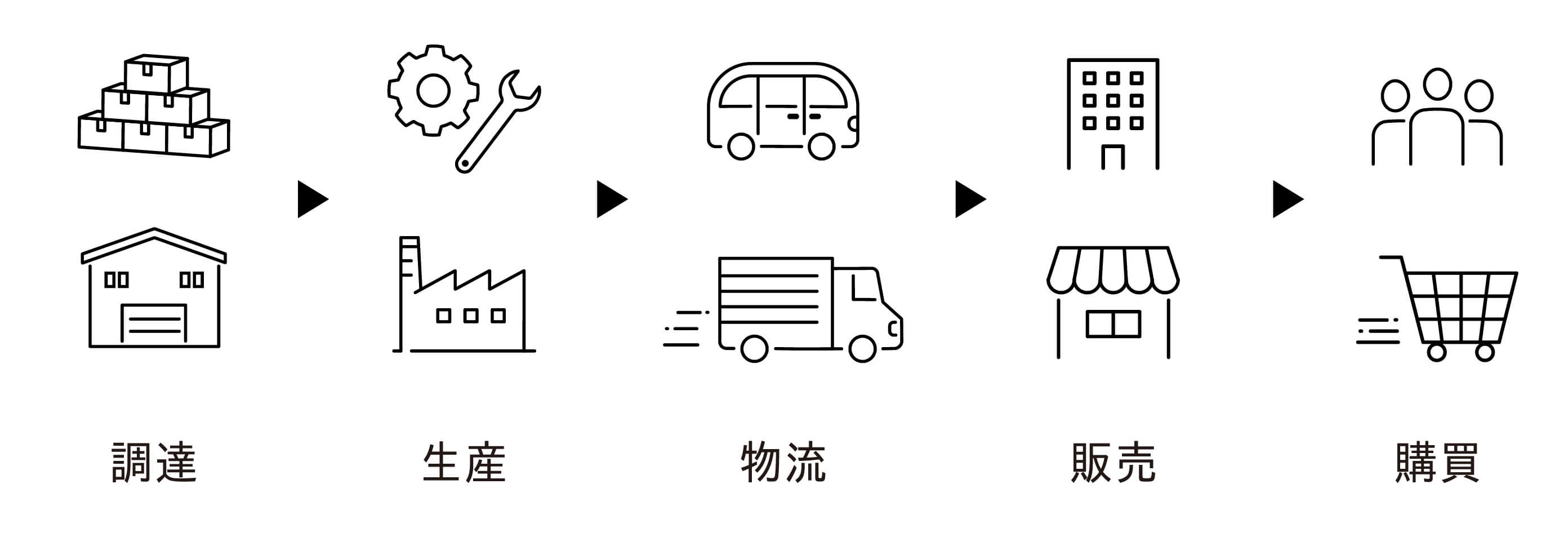 この「サプライチェーン」ですが、企業の経済活動においては、以下の図のような流れがどのような経済活動には存在しています。
