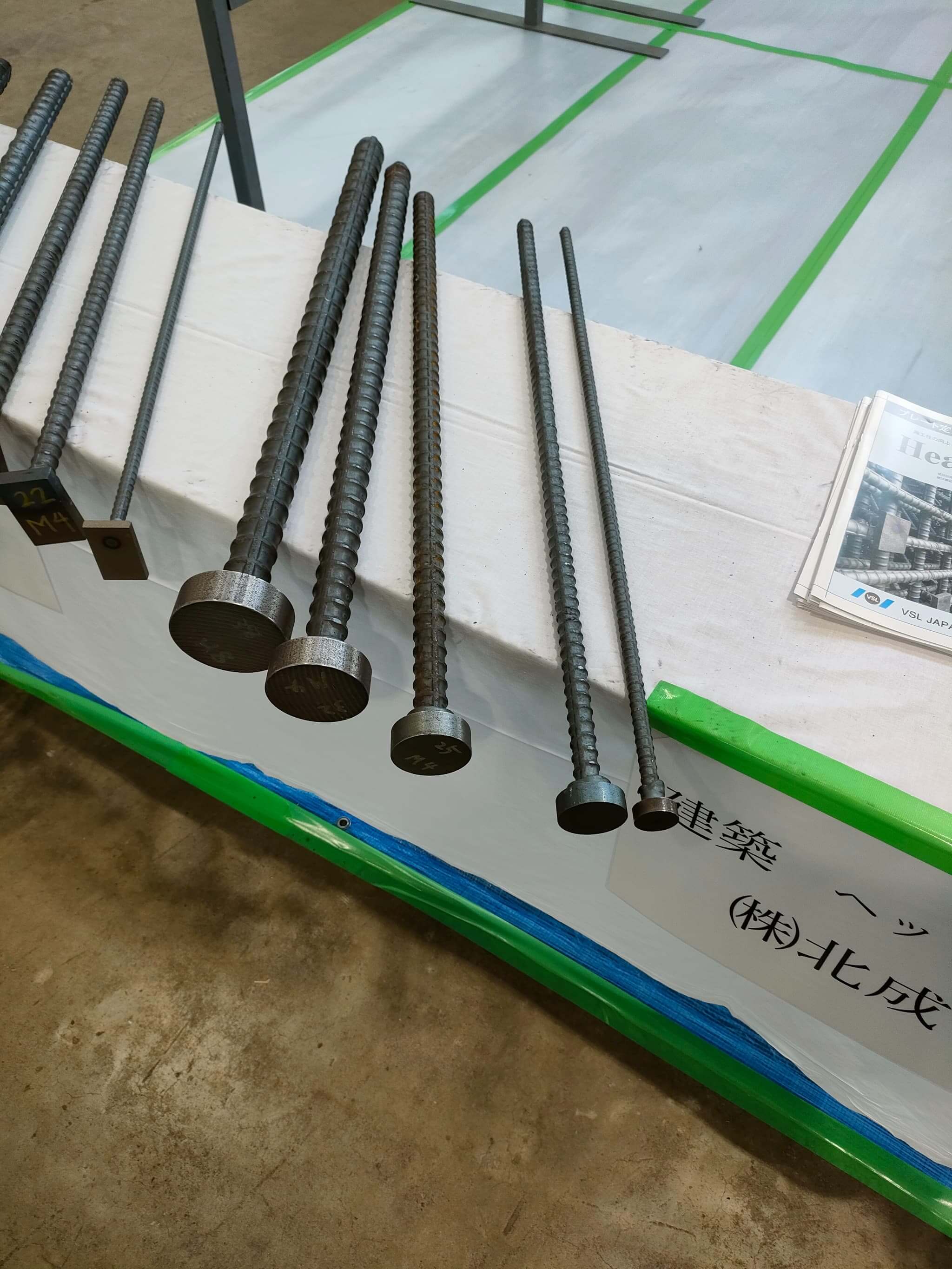 開場前の時間などを利用して他のブースも廻りました。その中でちょっと注目したのが「福井県鉄筋協同組合」さんのブースです。このブースは、福井県建専連さんが展開する「高校生対象の体験型コーナー」での展示の一部なのですが、「機械式定着工法」の配筋展示があったのです。