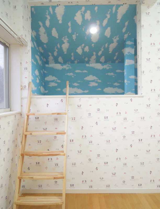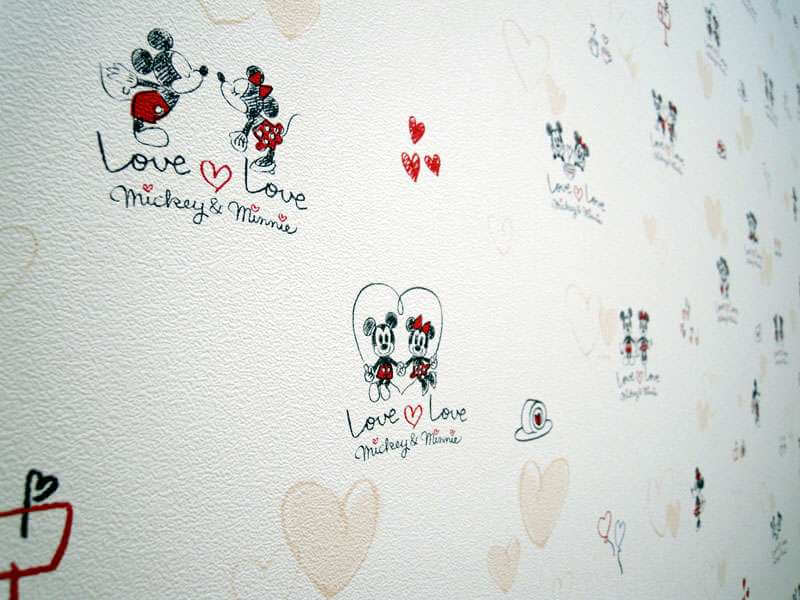天井には空が広がり、壁には可愛いいミッキー&ミニー柄のクロスが貼られています。とてもかわしいお部屋に仕上がっています。