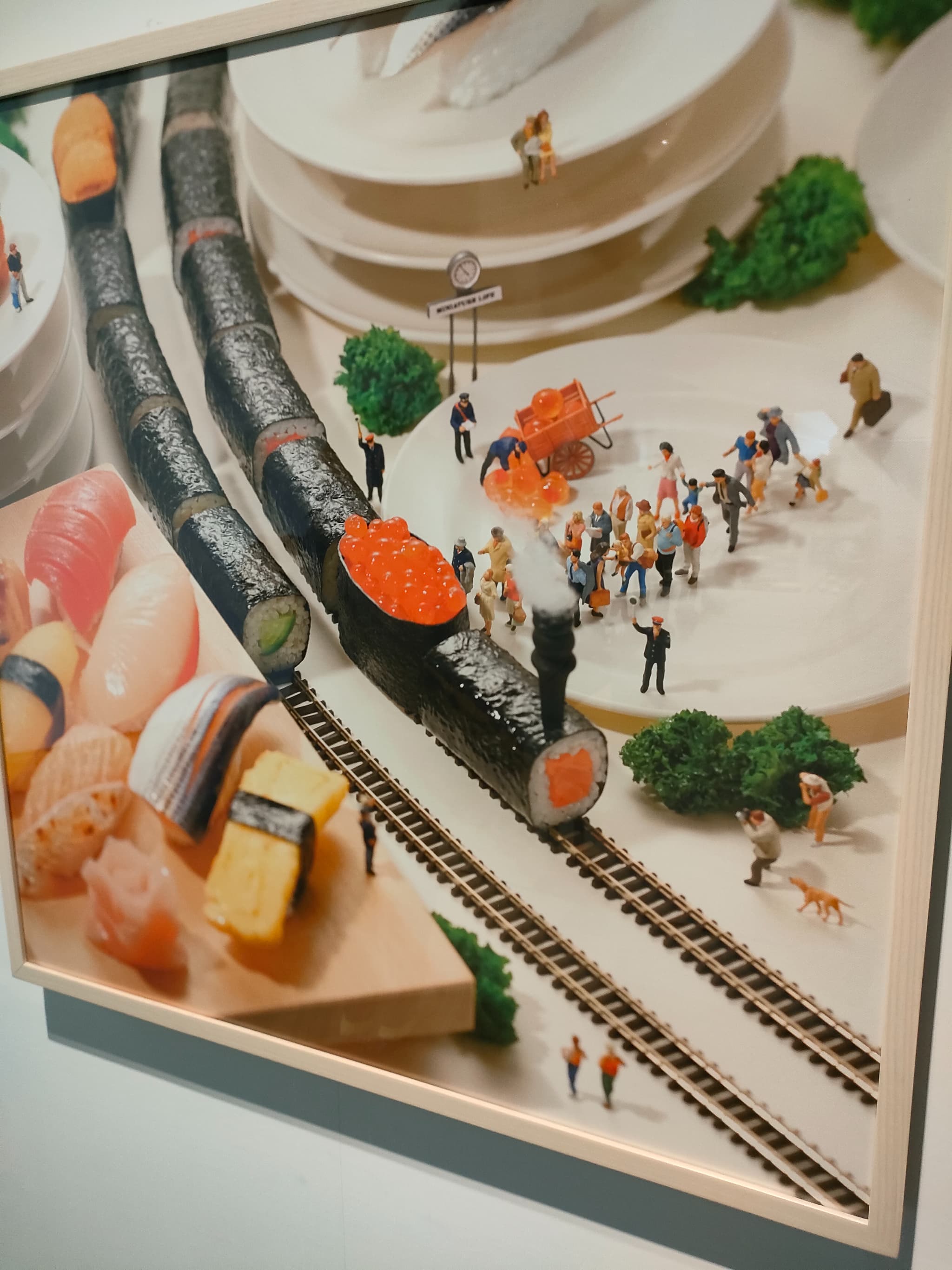 ミニチュアというと建築では「模型」を思い起こされる方も多いのではと思いますが、田中達也さんのミニチュアアートは、身の回りにある生活用品や、食品サンプルや時には本物の食品など、とにかく日常品をアートのステージに変えて、そこにミニチュアで人や動物などを配置して演出するという、非常にユニークなアートなのです。今回2回目の福井開催なのですが、この展示会、なんと、「撮影OK」かつ「SNSアップOK」なのです!
