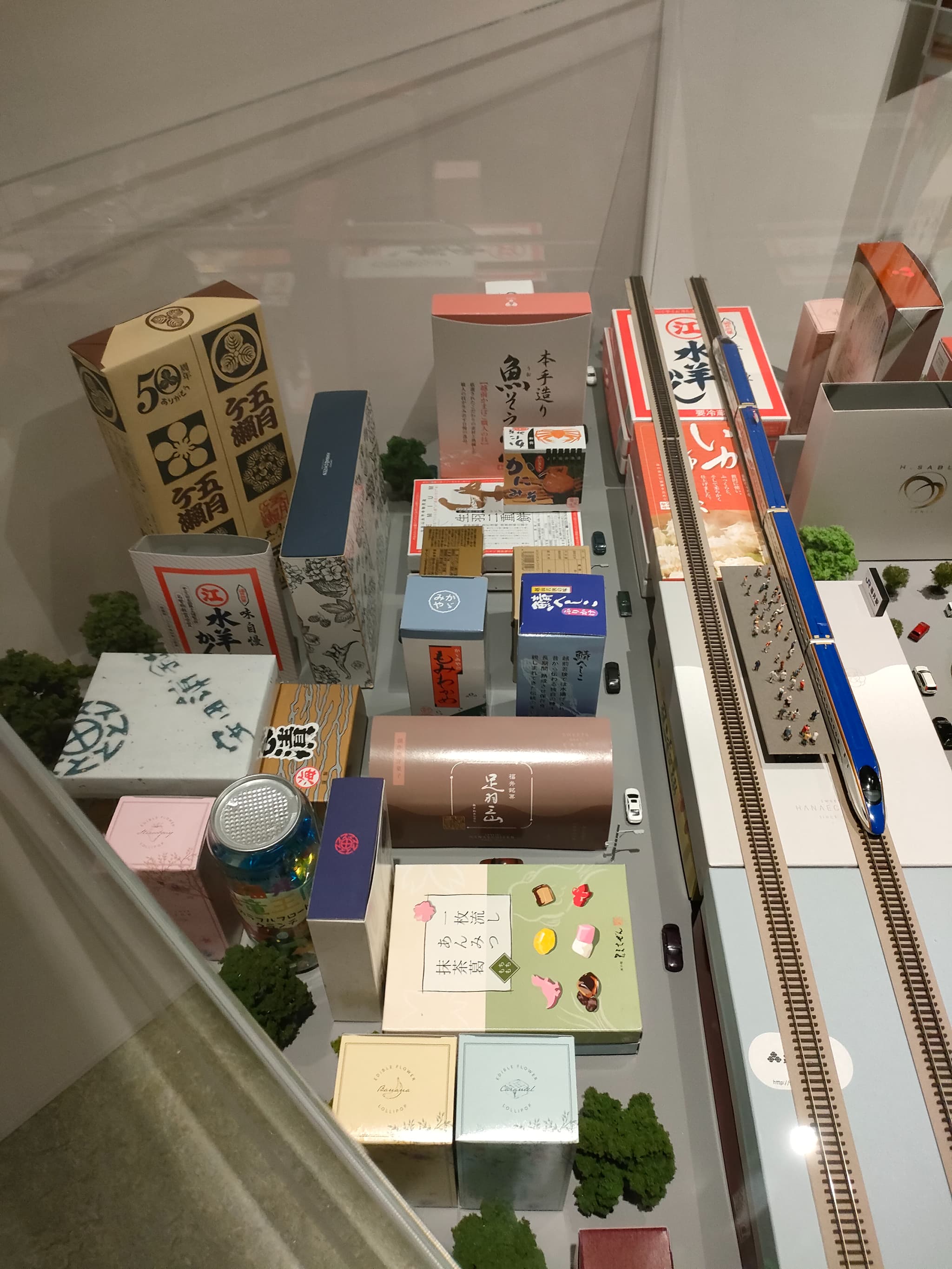 さらに、今回の展示は「北陸新幹線福井開業記念」ということで、「福井駅と福井の名産品」をつかったミニチュアアートも展示されてました!