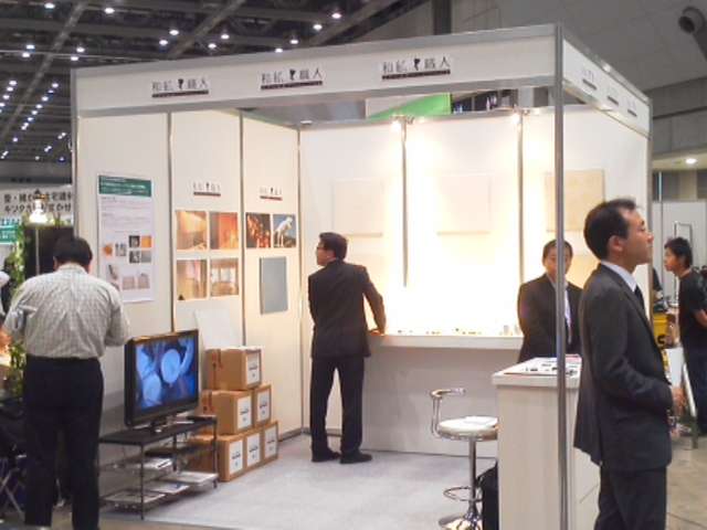 今年もリフォーム産業フェアへ視察に来ました。今回の大きな目的は、当社のSDN-SHEETの出展検討です。このイベントは比較的小さな規模の企業が出店しています。そんな中で、同郷の福井の企業も出展していました。越前和紙を使った新しい壁仕上げ材の提案でした。この素材がなかなか良いんです。うちの建物でも使えたら良いな〜と思いました。