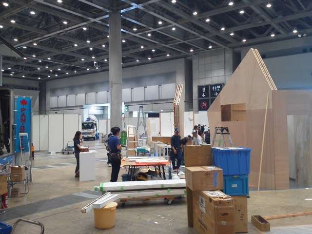 リフォーム産業フェア2014 SDN-SHEET 2014.06.16 今年、初出展のリフォーム産業フェア2014 ただいま、大きな展示小間の設営準備中です。1小間ブースの当社は11時からの設営開始予定。その前に少しだけ準備中の会場内をチェックしてきました。当社ブースのお披露目は本日夕方までにはできると思います。今しばらくお待ちください。