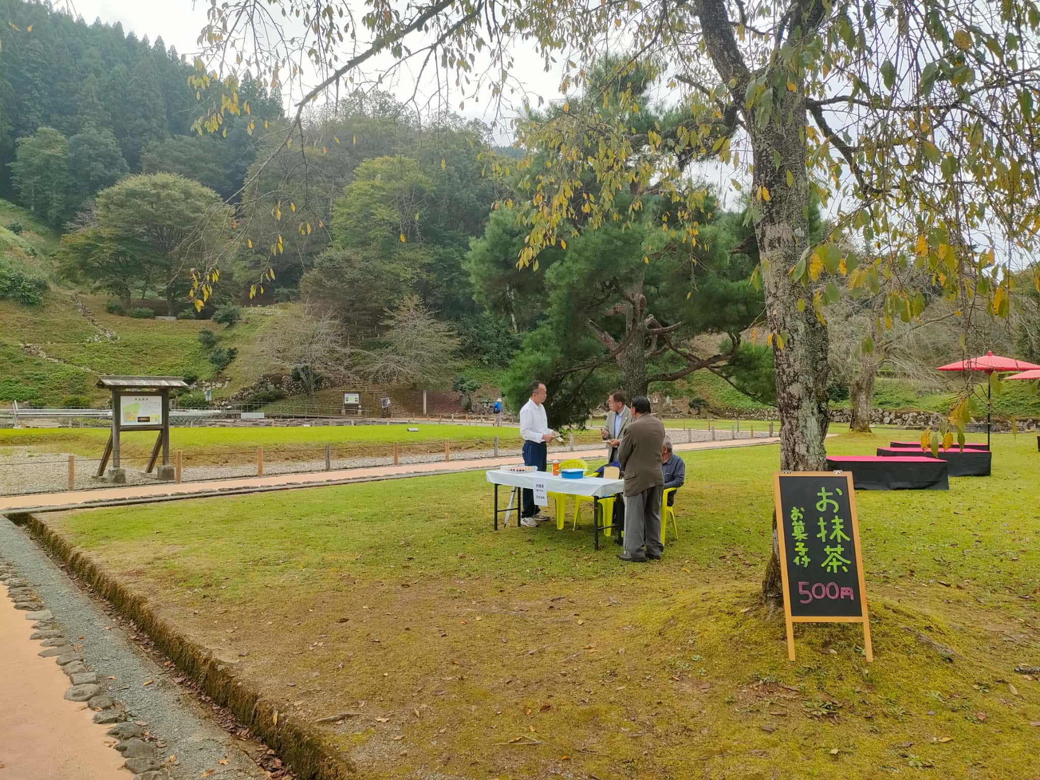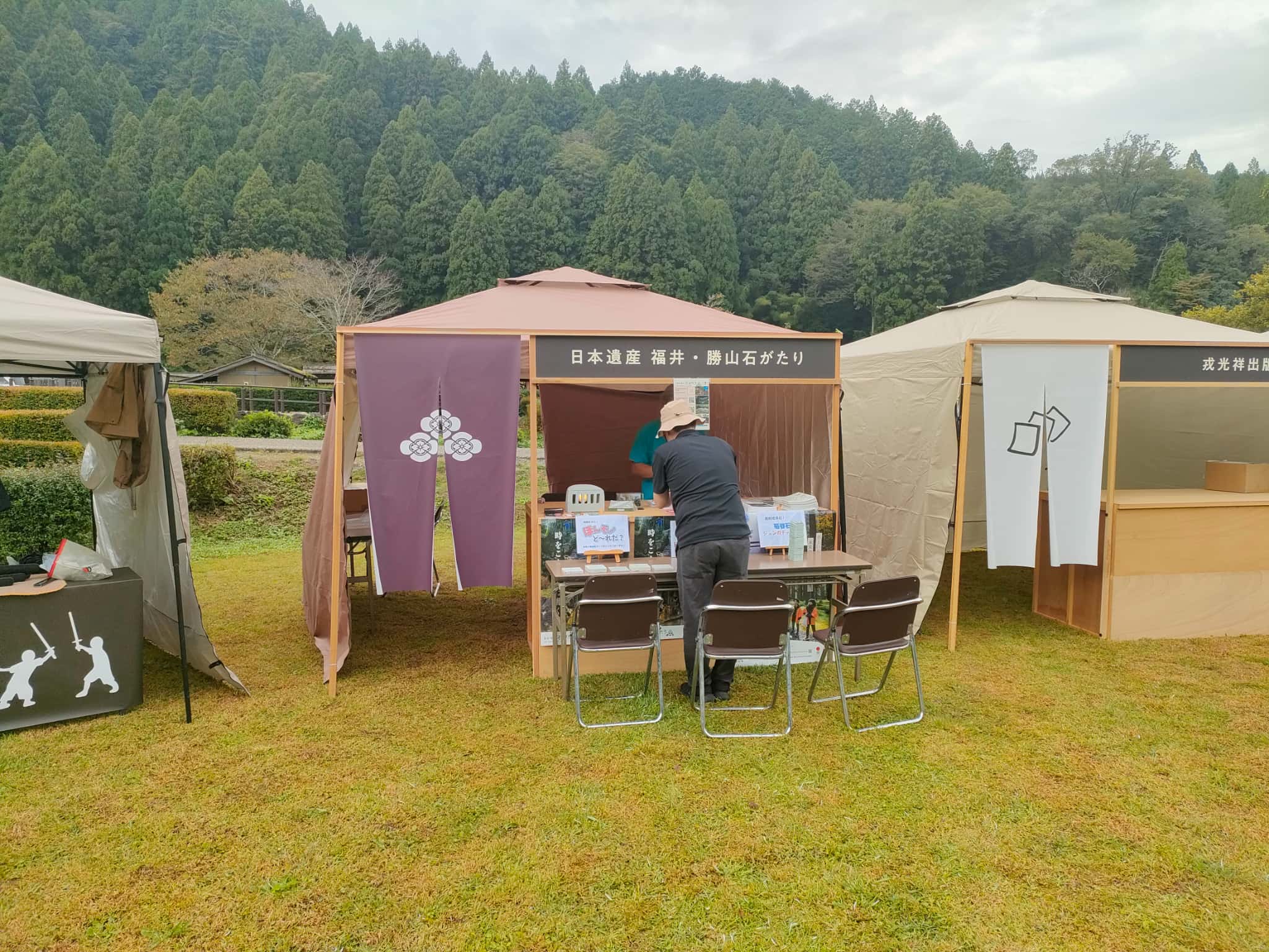 連休期間に2日間の日程で開催されるんですが、唐門前の芝生広場を中心にイベント開催です。たぶん朝倉氏遺跡の駐車場から車があふれるくらいの状態になるかな?と思い、開催10時ちょい前に着くようにいきましたwww