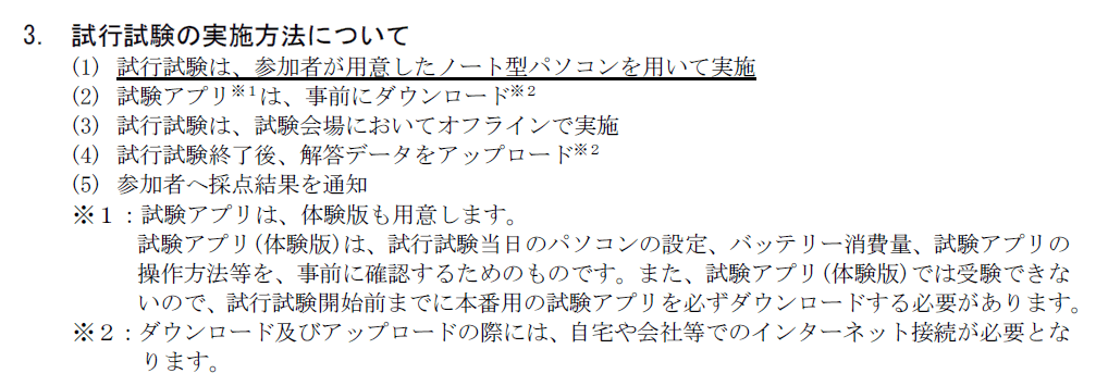 謝礼はともかく、学科試験のデジタル化ってことでその「やり方」を注目したいのですが、正直、個人的には「それデジタル化って言うんかな?」って疑問が残りますw 試行試験の方法なんですが、