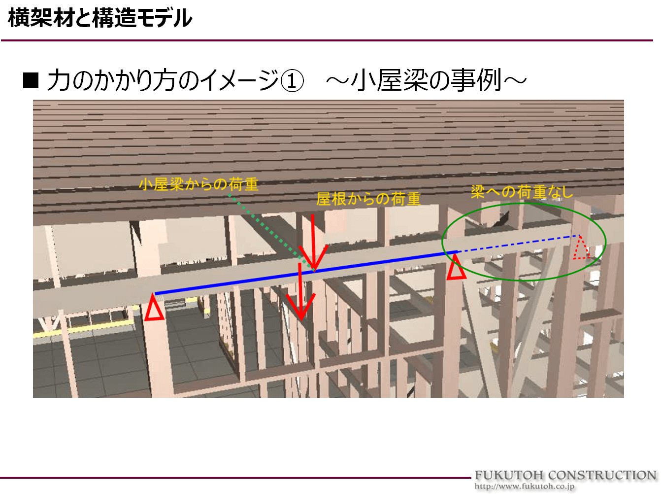 県産材木材の主力は「杉」材となります。この杉材を構造材として使う場合、柱であれば特段問題はないのですが、梁材として活用する場合、どうしても、ベイマツなどの材料と比べると強度が落ちます。強度が落ちるから使えないわけではなく、その欠点を構造計画上の工夫でかわしていくことが一つのノウハウとして必要なのですが、構造というと敷居が高く、なんだか難しい話しになりがちなので、そこをざっくばらんに、できるだけ直感的に考えられるように解説いたしました。