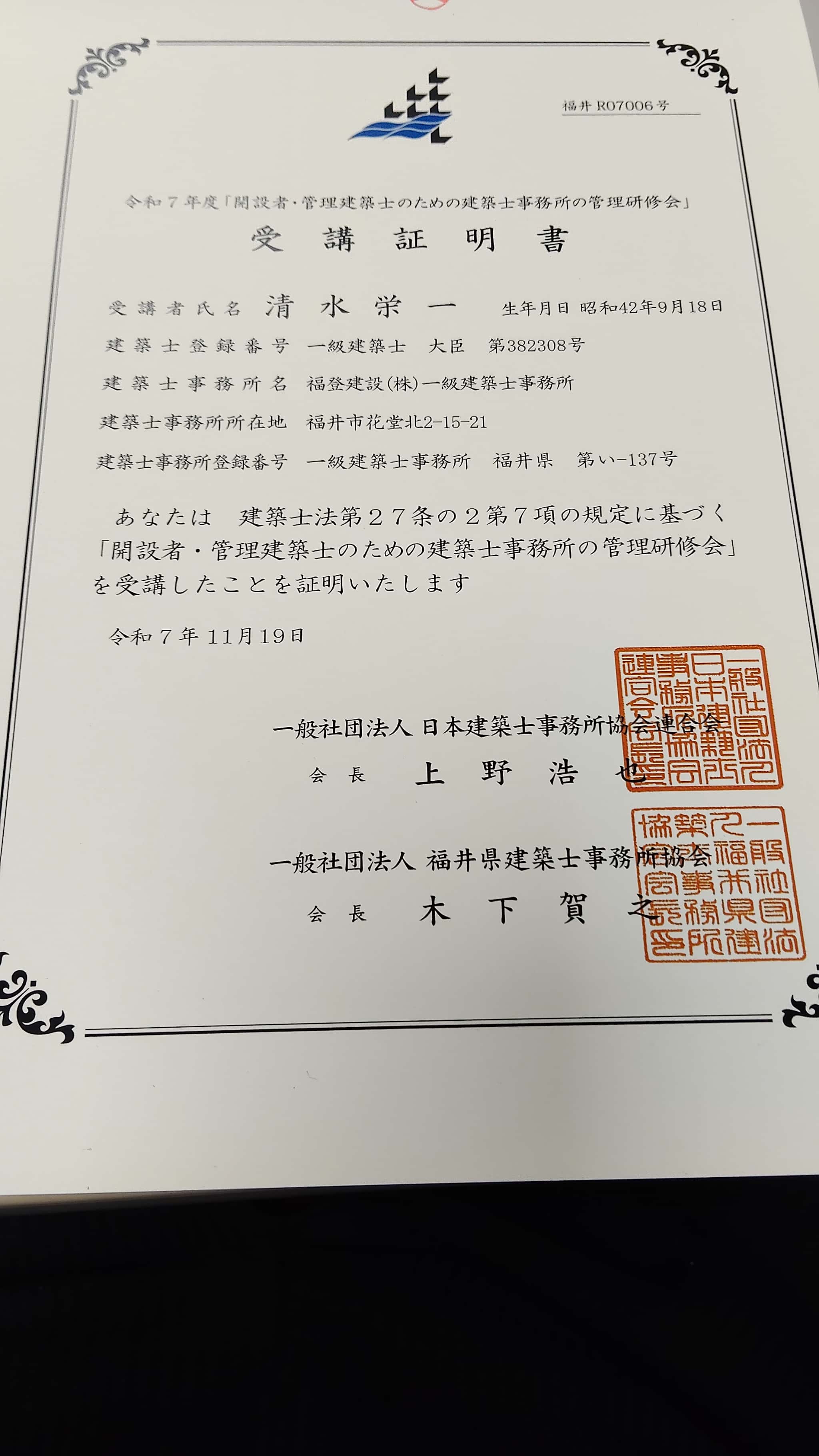 福井県の林産業振興の目的での制度で、福井で生産された木材を活用して住宅建築を執り行うことを推進するために、福井産の木材の特徴などを含め知識を研鑽していく目的で年に4回程度の研修を行っています。実際の木材利用の現場見学や、木材製材の加工現場となる工場視察などもあり、木材に対する理解力を深めることを研修目的としています。