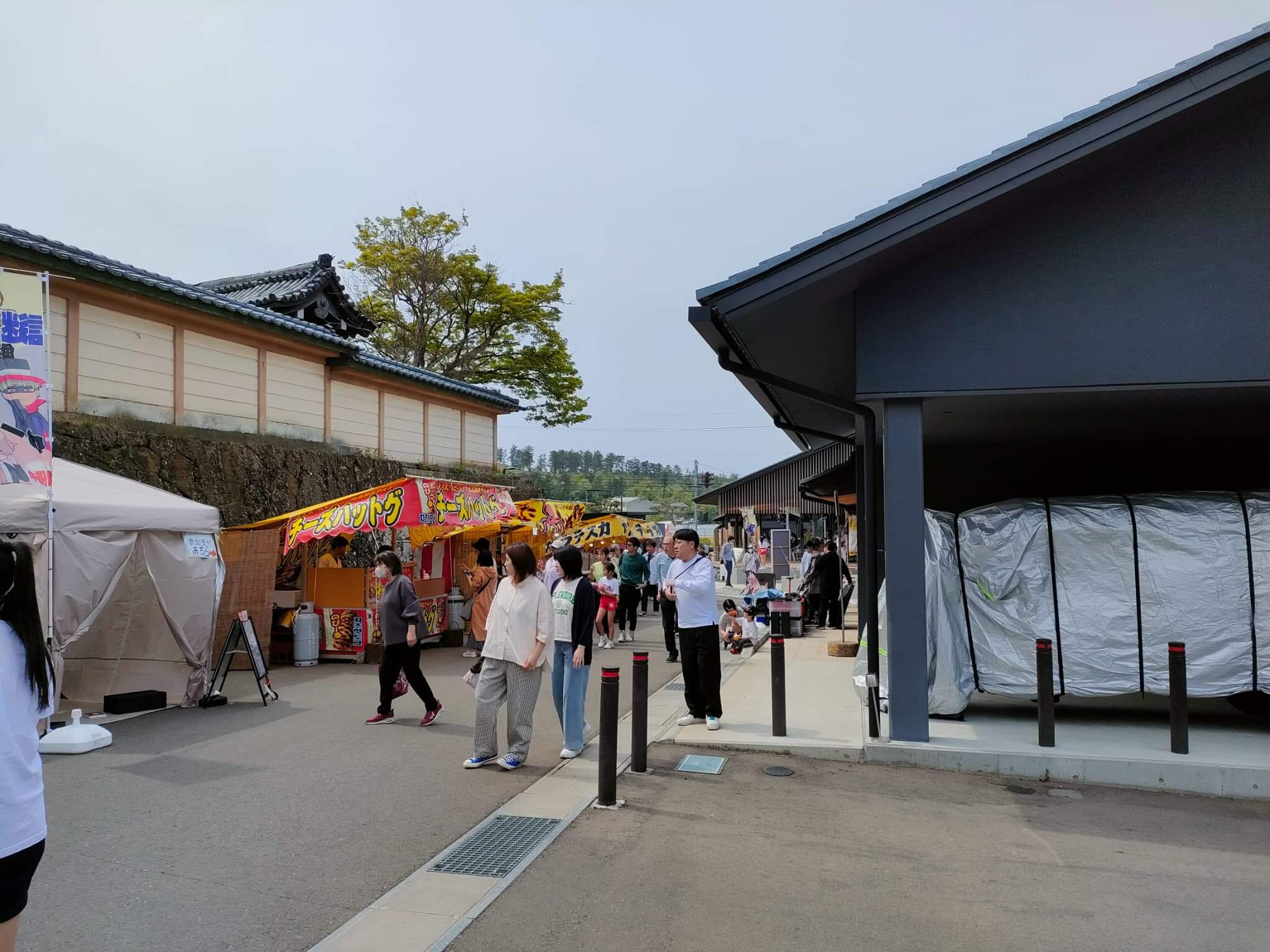 この路地から道の駅に至るまでも出店が数多く出展されています。道の駅の2周年祭も同時開催ですので、去年よりも規模が大きくなっているような感じがしました。さらに、道を挟んでの「汀公園」にも出店が展開されていました。