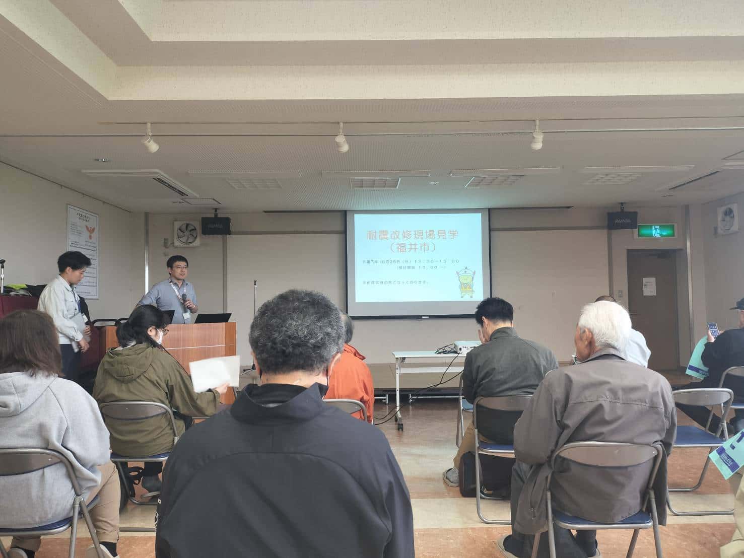というわけで、本日、弊社が手掛けております木造住宅耐震改修工事現場で、福井県主催の「令和7年度 木造住宅耐震改修現場見学会」が開催されました。