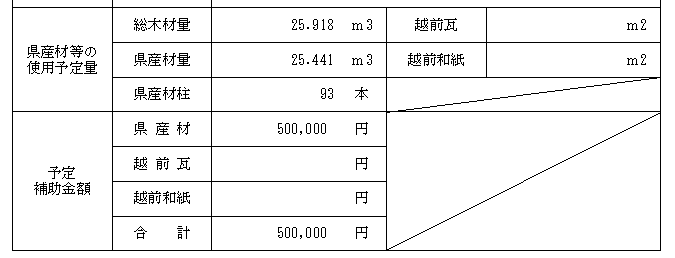 このような形になっておりまして、総木材に対する県産材量は98%超となっています。20立米超しておりますので補助金は満額の50万が出されます。