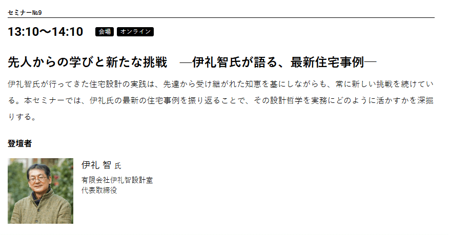 そして、6日最終日には、尊敬する「伊礼智先生」の講演がありました。