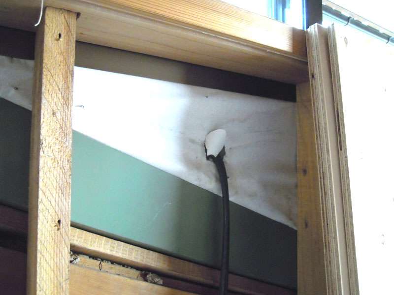 TVアンテナ線が外壁から差し込まれています。外装面の通気防水シートは裂かれて施工されているのですが、補修された跡はありません。外装面はシリコンで隙間埋めしたのでしょうが、そもそも通気防水シートは外装面における防水面ですので、そこを裂いてしまうことがどういうことになるか?ということが想像できなかったのかもしれません。