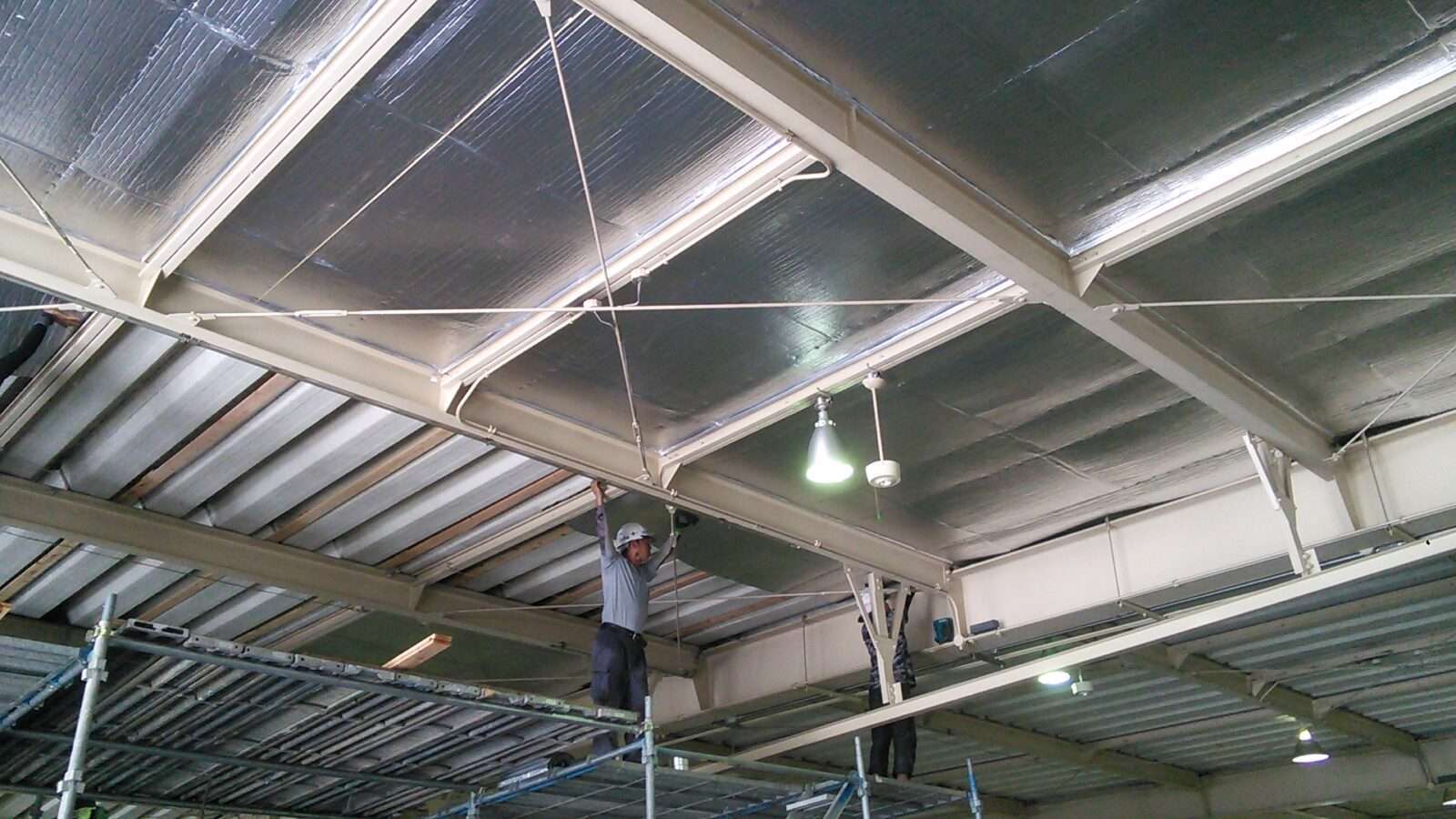倉庫屋根の遮断熱施工工事 SDN-SHEET 2016.07.202024.08.27 今週は、静岡の物流会社様の倉庫への遮断熱施工です。梅雨明けの快晴の中グングン上昇する倉庫内の気温ですが、SDN−SHEETを施工した屋根の下は、暑さのレベルが完全に違います。施工作業を行っている者が一番体感できる瞬間です。ようやく1/8の施工が終わりました。 先はまだ長いです(^_^;