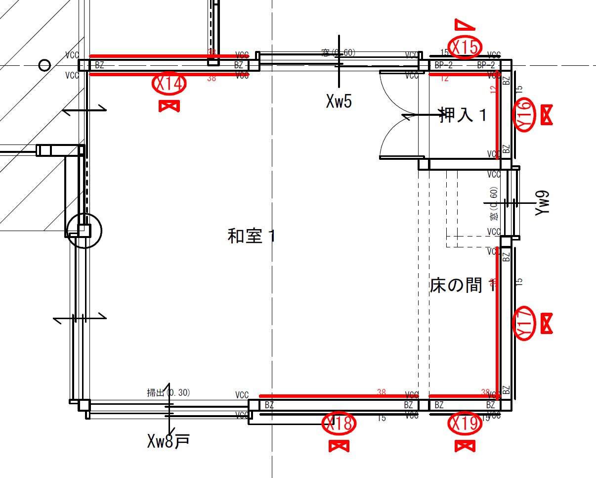 ですが、改修する壁が連続している場合には、ツリーの構造を工夫する必要が出てくるわけです。例えば、画像でいうX18とX19ですが、X18の右の柱はX19の左の柱でもあるわけです。柱の頭と脚につけるプレートはこのX18とX19両方にかかってくるので、写真管理も連続的に管理しないとダメってわけですw
