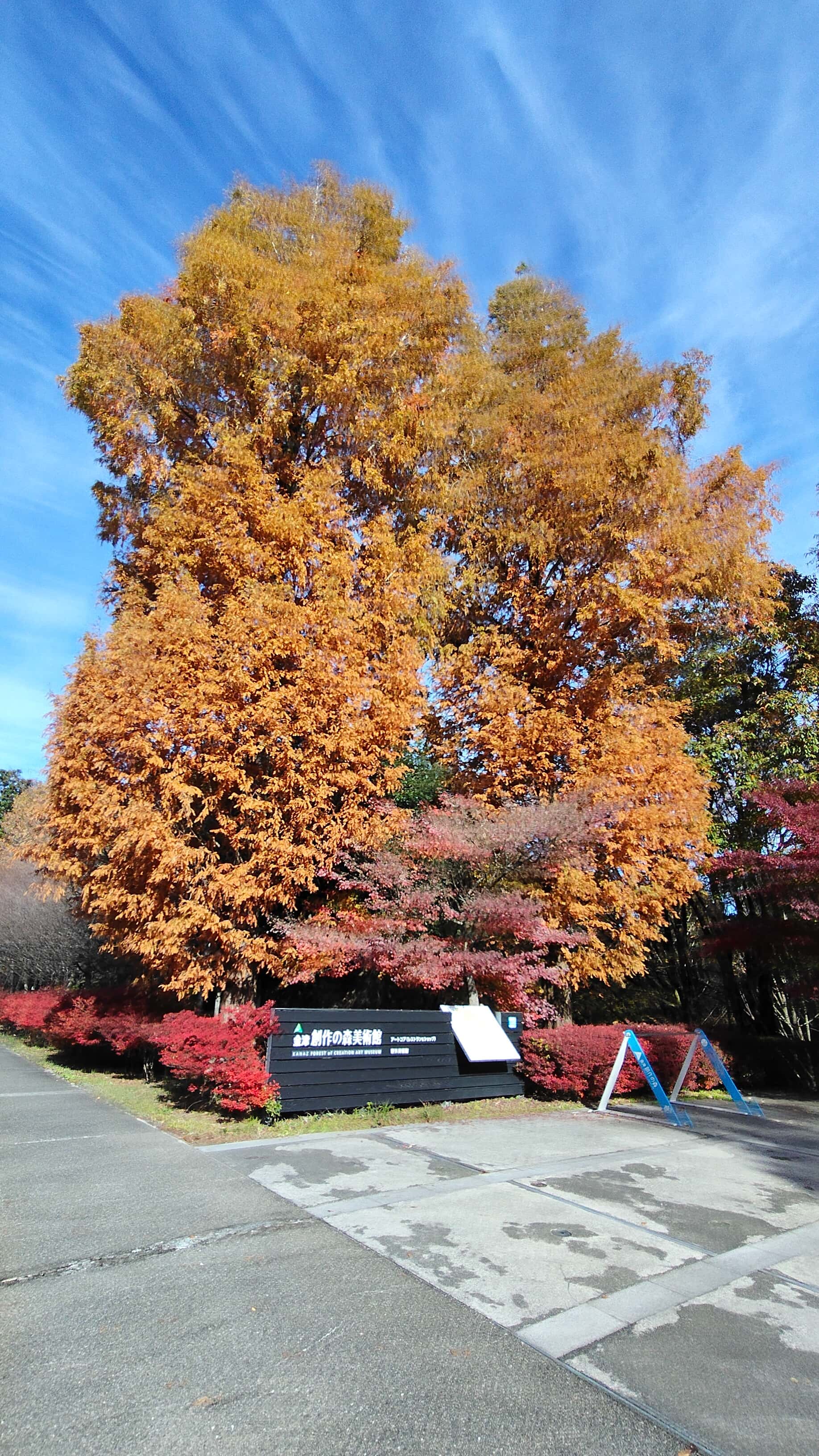 金津創作の森附近の紅葉はイイ感じで見ごろになってます。施設にはアートコアという室内展示場と、野外美術館として小川や池で整備された公園のようなところでの展示場がありますが、そのどちらも使ってのイベントです。