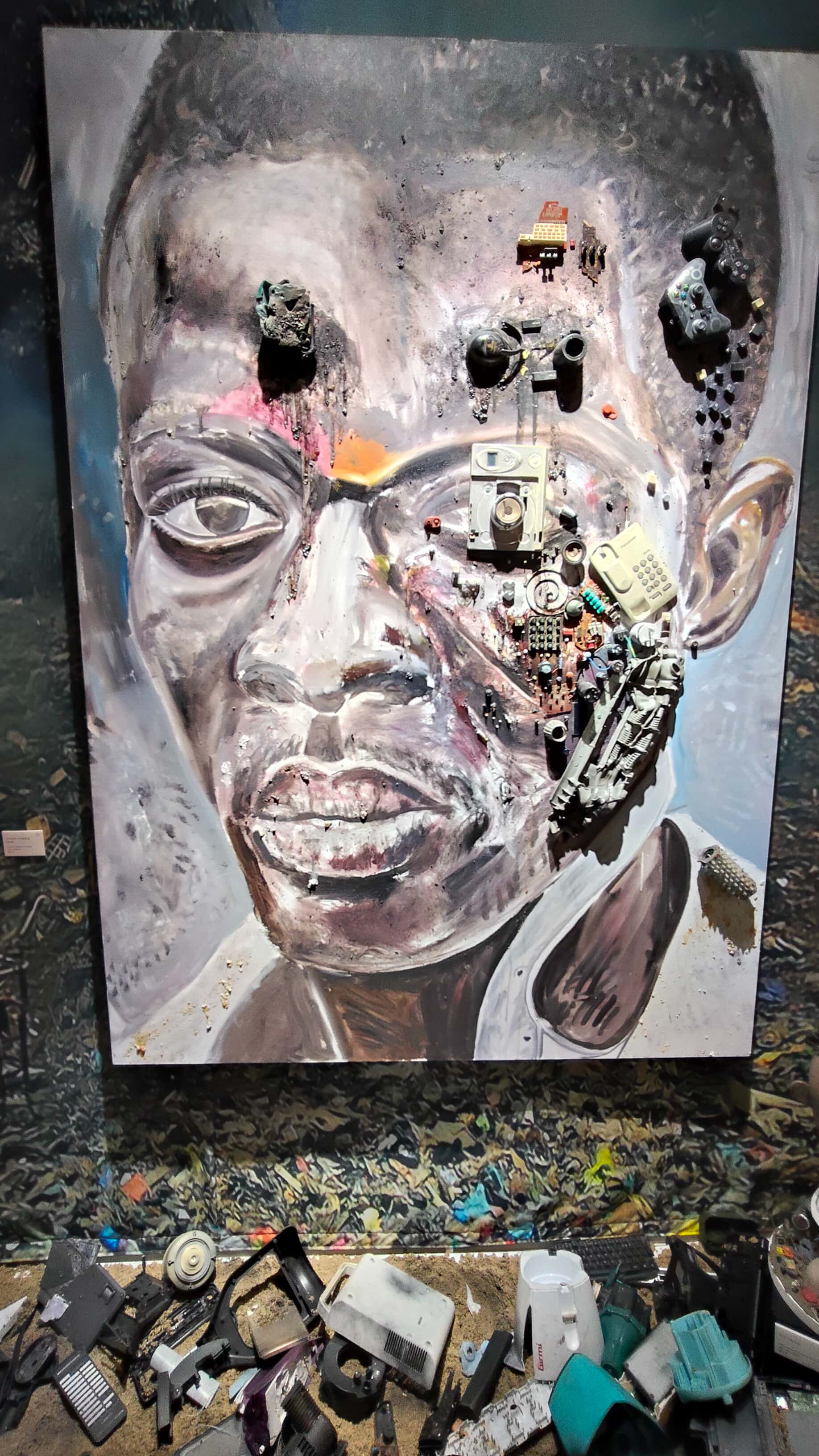 展示アートのほとんどは、廃棄された電子機器の部品、筐体をつかって製作されています。