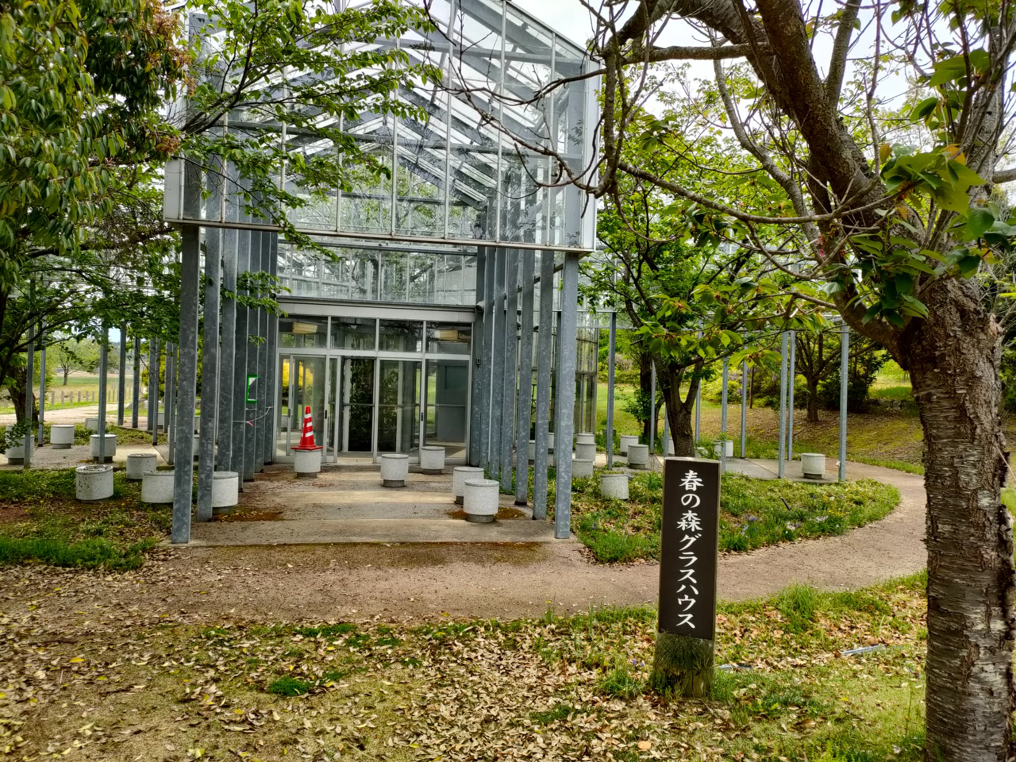 車で来られるときには、第二駐車場をお勧めします♪ 駐車場から湖に向かって歩き始めると、「春の森グラスハウス」が見えてきます。同様なグラスハウスが点在しているので、森の中を散策するのも楽しみの一つです。