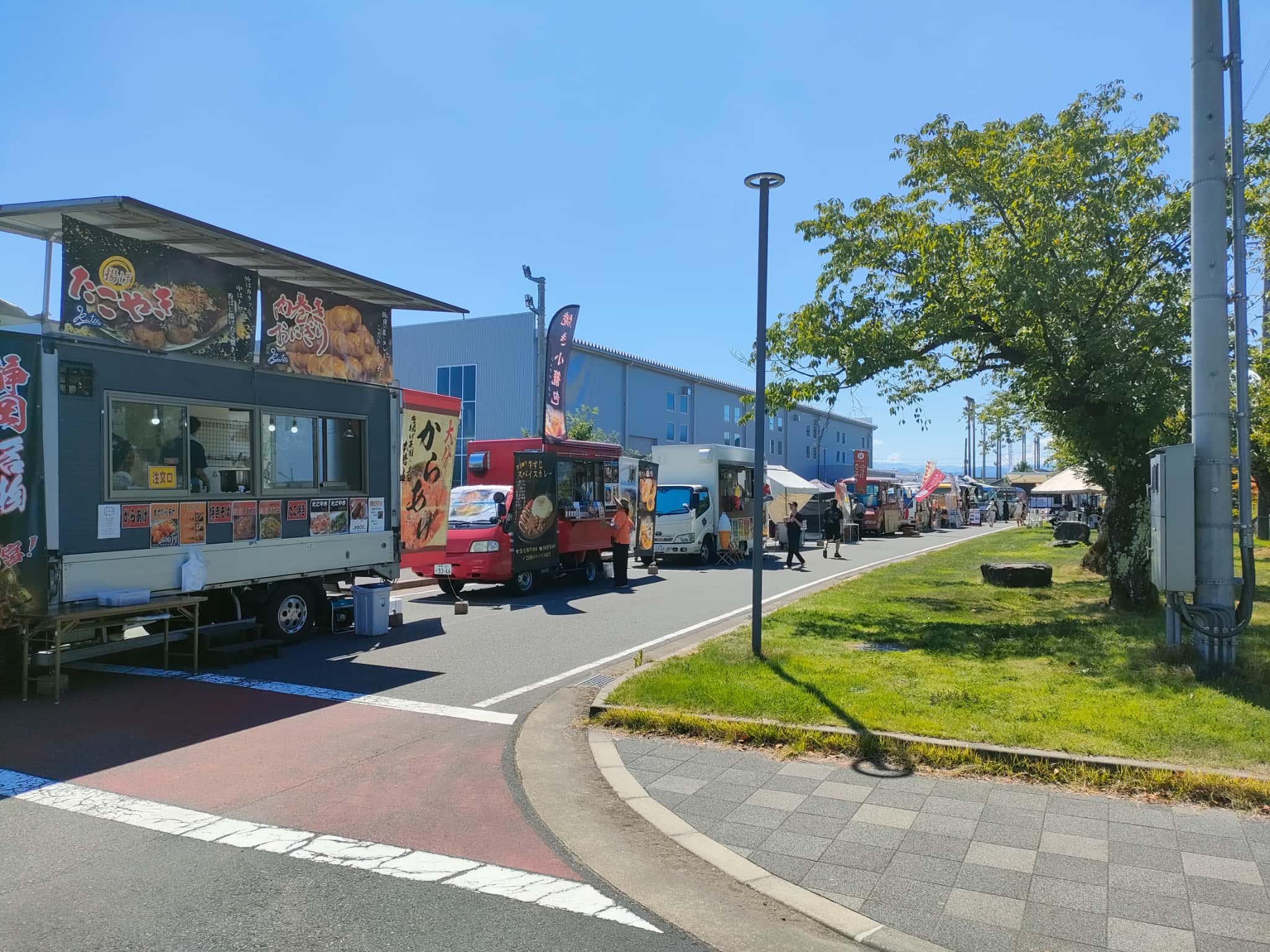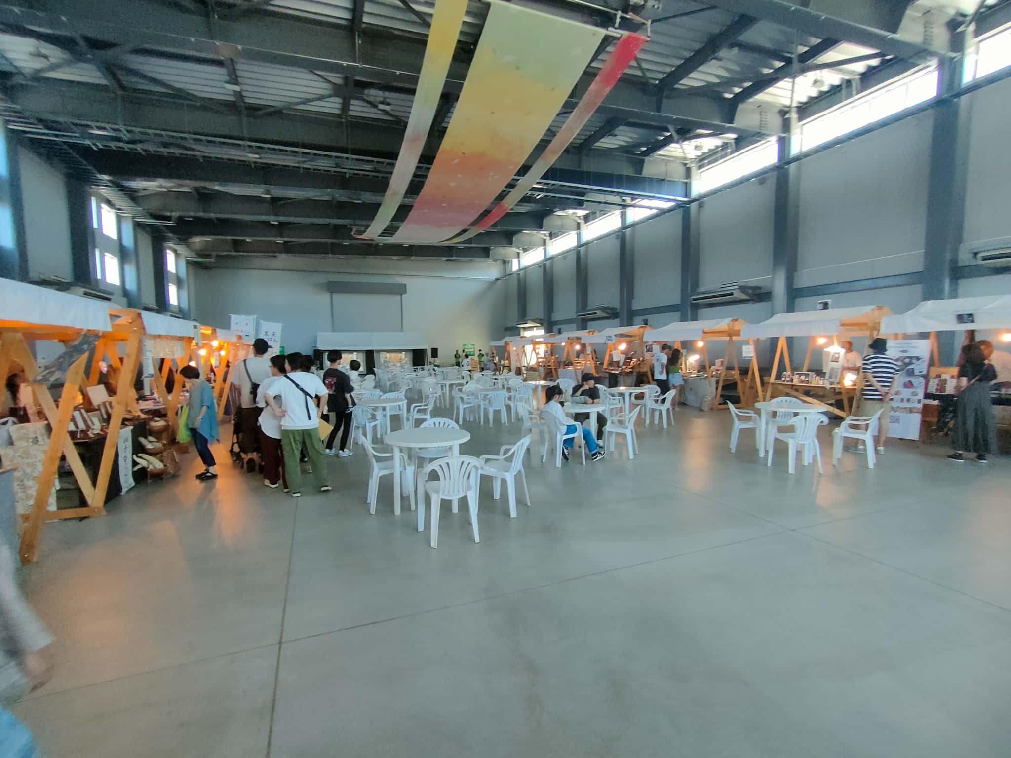 クラフトフードマーケットのエリアでは、キッチンカーの列と、施設内で展示販売されているところがありありました。