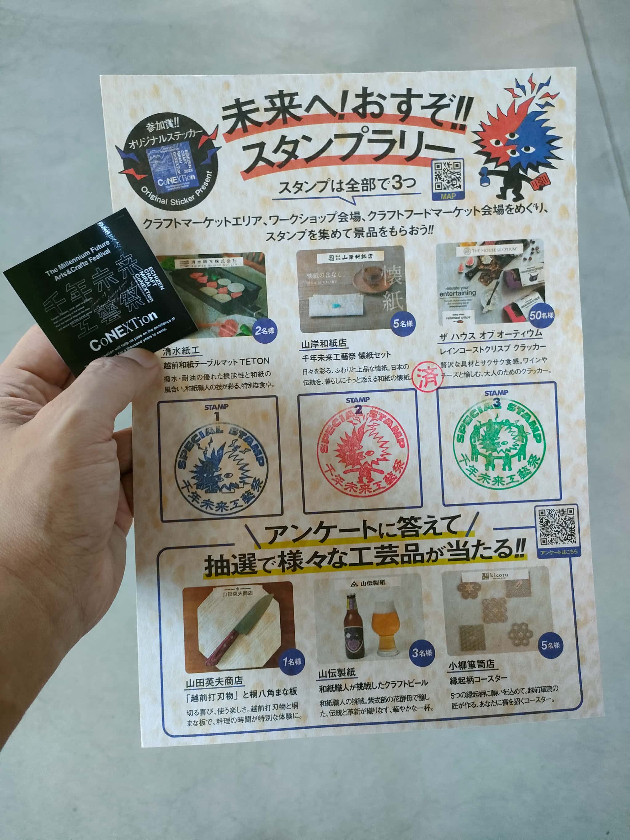 3つのエリアをうまく廻れるように、エントランスでは「スタンプラリーカード」を渡していました。