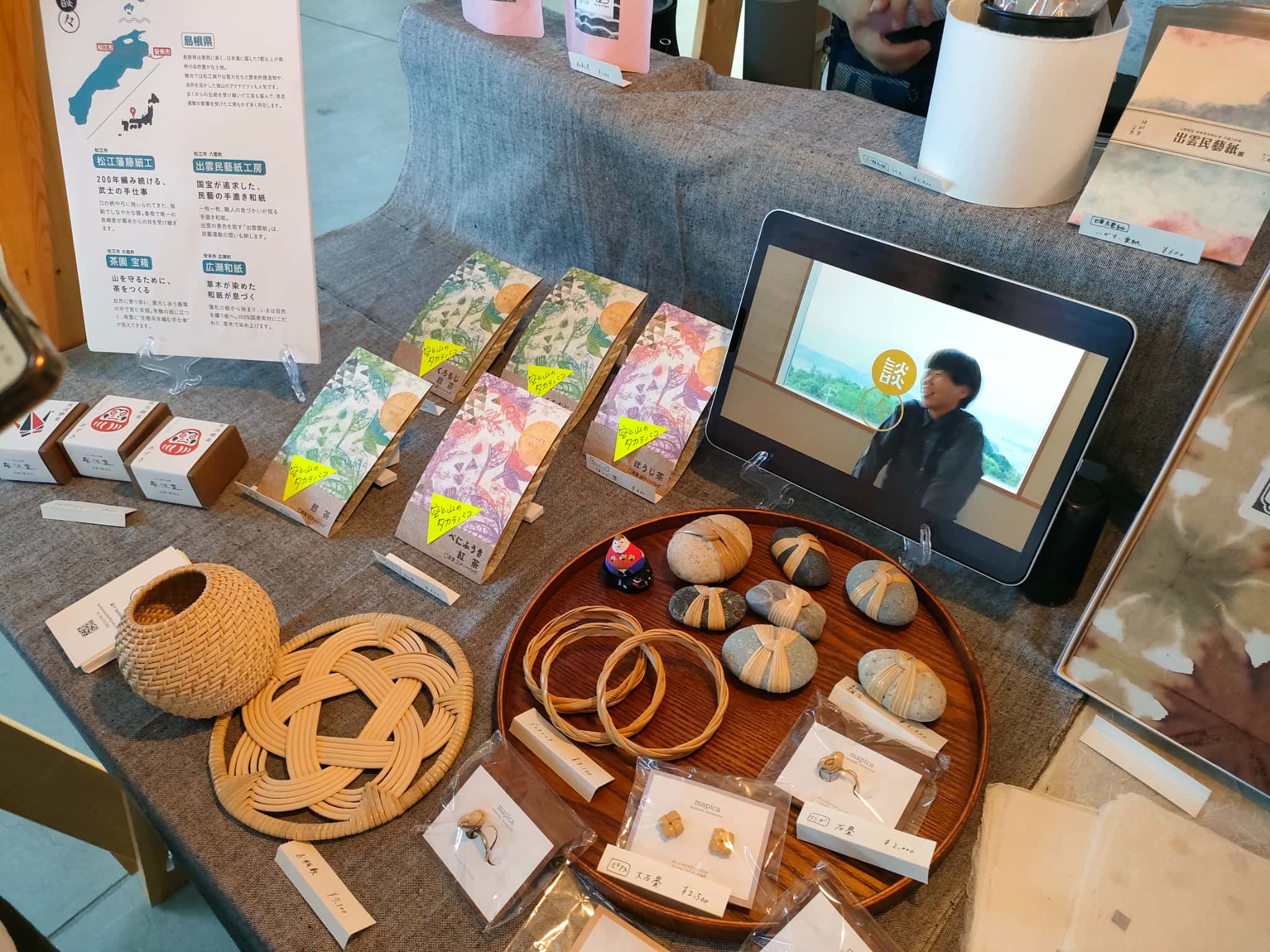 島根で栽培された茶葉で和紅茶の販売や、和紙の販売もありました。まぁ、和紙というと地元産が有名ですが、他所の和紙製品も見れて面白いと思いました。柚子胡椒と和紅茶は買いましたw