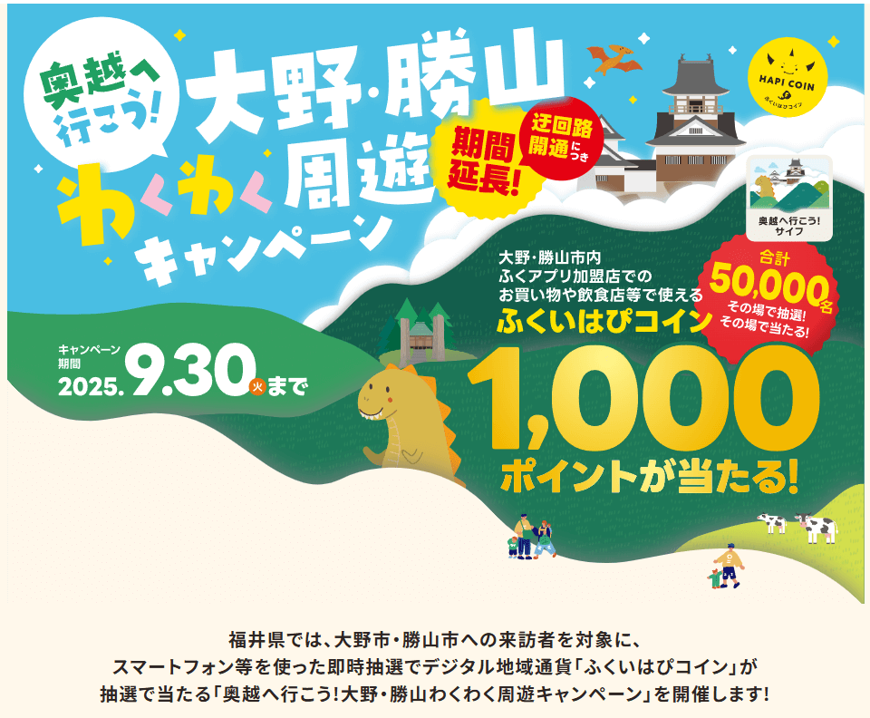 そして、この仮設道が開通したことで「ふくい はぴコイン」ではイベントが開催中です。