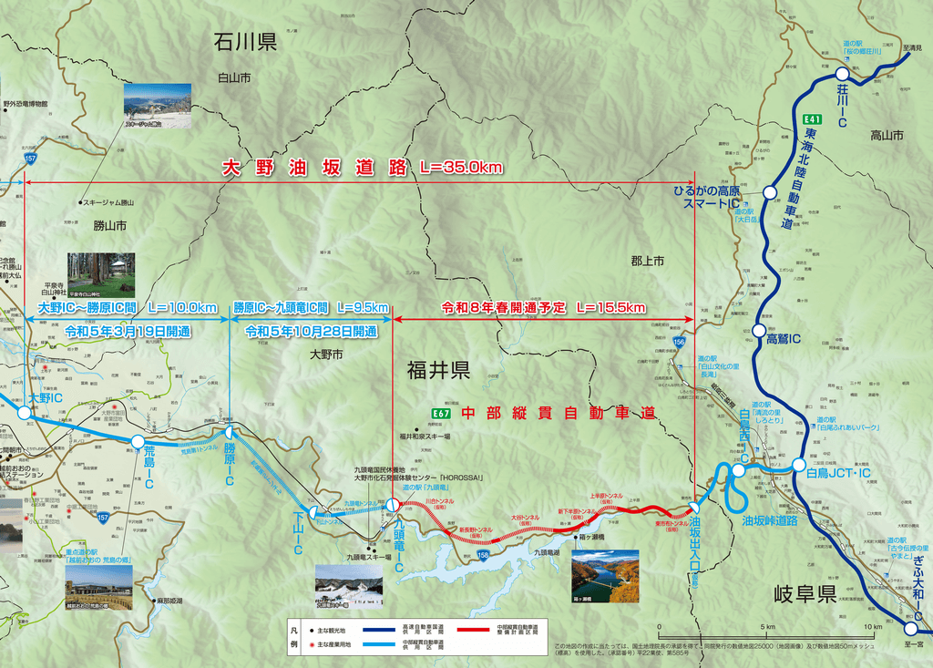 中部縦貫道の工事未完了区域があるものの、九頭竜ICから油坂峠出入口までは未完了であるだけで、九頭竜ICまで高規格道路が延びたことでの交通利便性は格段にあがり、その効果として岐阜県境からの観光客の方のアクセスはすさまじい数の増加があったことは言うまでもありません。九頭竜IC付近には、「道の駅九頭竜」というものがありますが、ここは静かな道の駅で休日でもそれほど観光客であふれかえることはなかったのですが、中京方面からのアクセスがよくなったおかげで、休日には駐車場から車があふれかえる状態になりましたし、このルートを福井側から走りますと、多くの中京方面のナンバーをつけた車とすれ違うようになりました。福井ナンバーのほうが少ないイメージがあるくらいですw