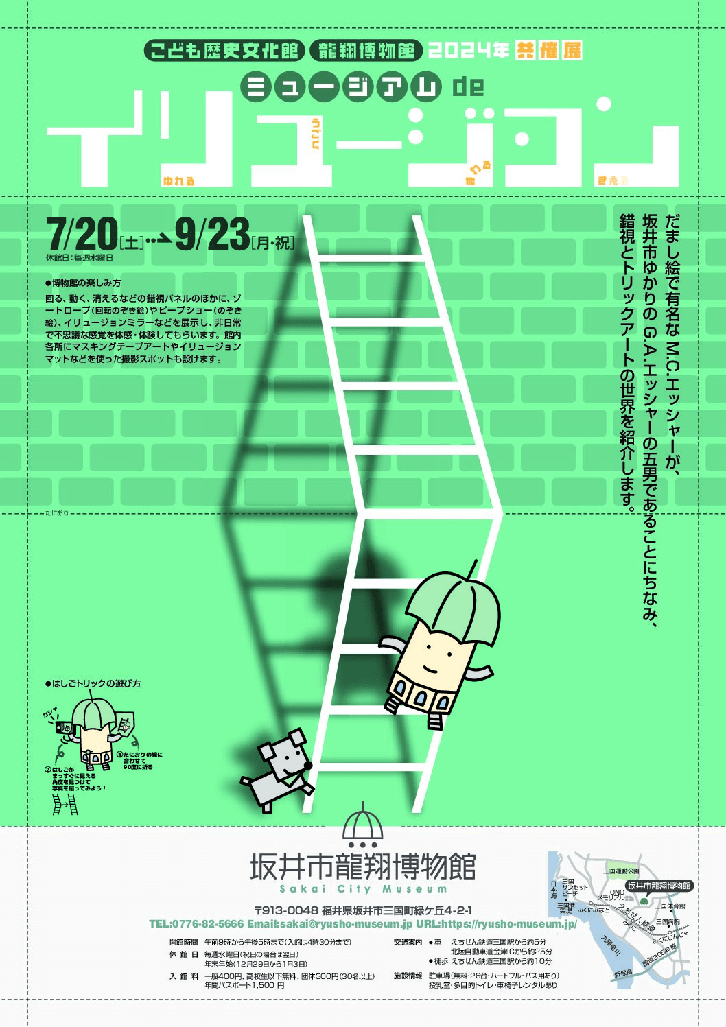 坂井市龍翔博物館では、福井県立こども歴史文化館との共催展として「夏の企画展 ミュージアムdeイリュージョン」が開催中です。