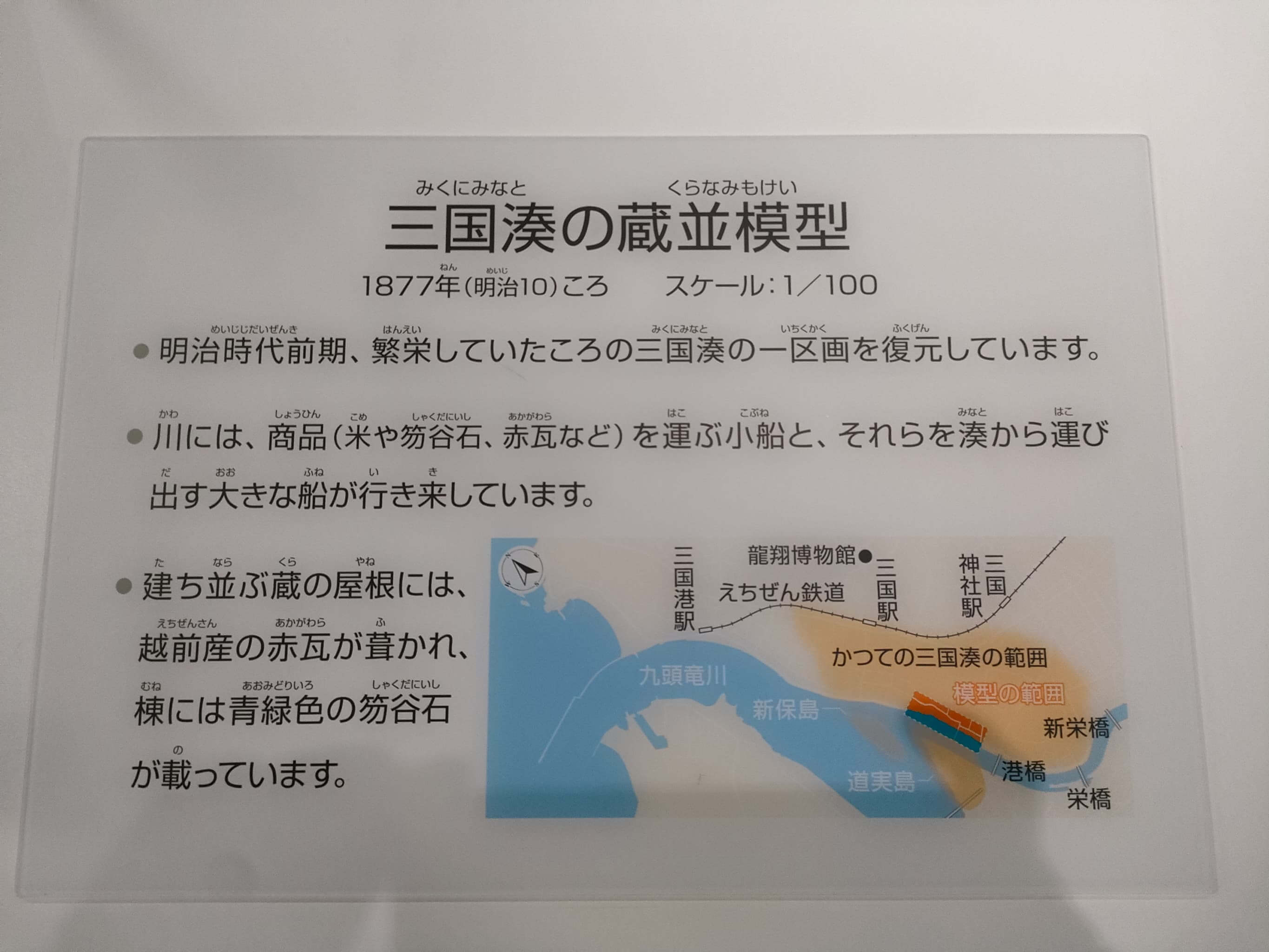 その「龍翔小学校」が建物の傷みが激しくなり、1914年(大正3年)には取り壊されたのですが、1981年(昭和56年)9月に「みくに龍翔館」として復元建築され、三国町の郷土資料館として運営されてきました。そして、2023年(令和5年)6月3日に全面リニューアルを行い、名称も「坂井市龍翔博物館」と改名されました。