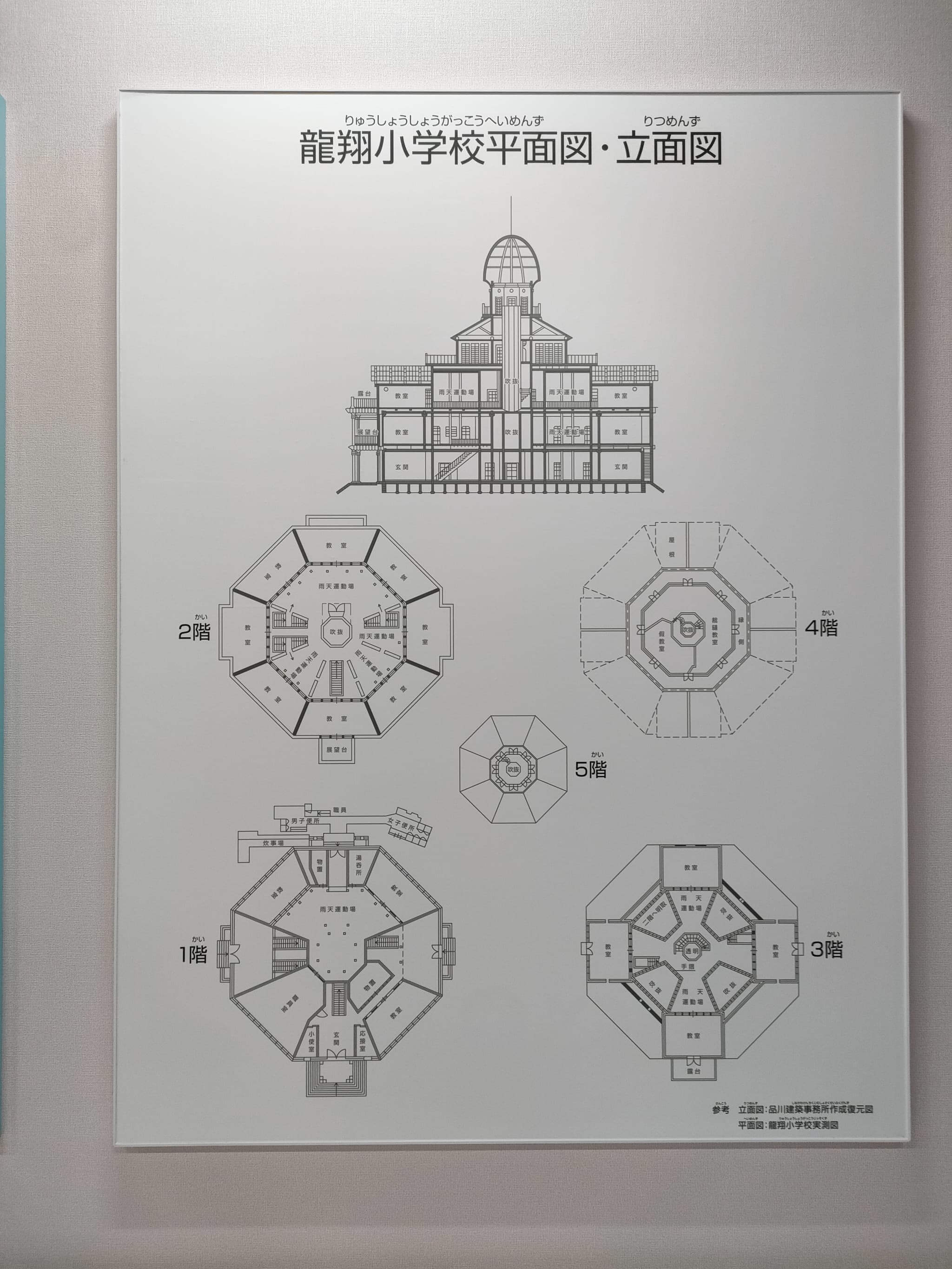 坂井市三国町にある「坂井市龍翔博物館」に行ってまいりました。この博物館は元は「龍翔小学校」として、1879年(明治12年)5月に建設されたもので、木造5階建て擬洋風建築の建物です。外観はちょっとごらんになれるでしょうか?六角形の建物です。
