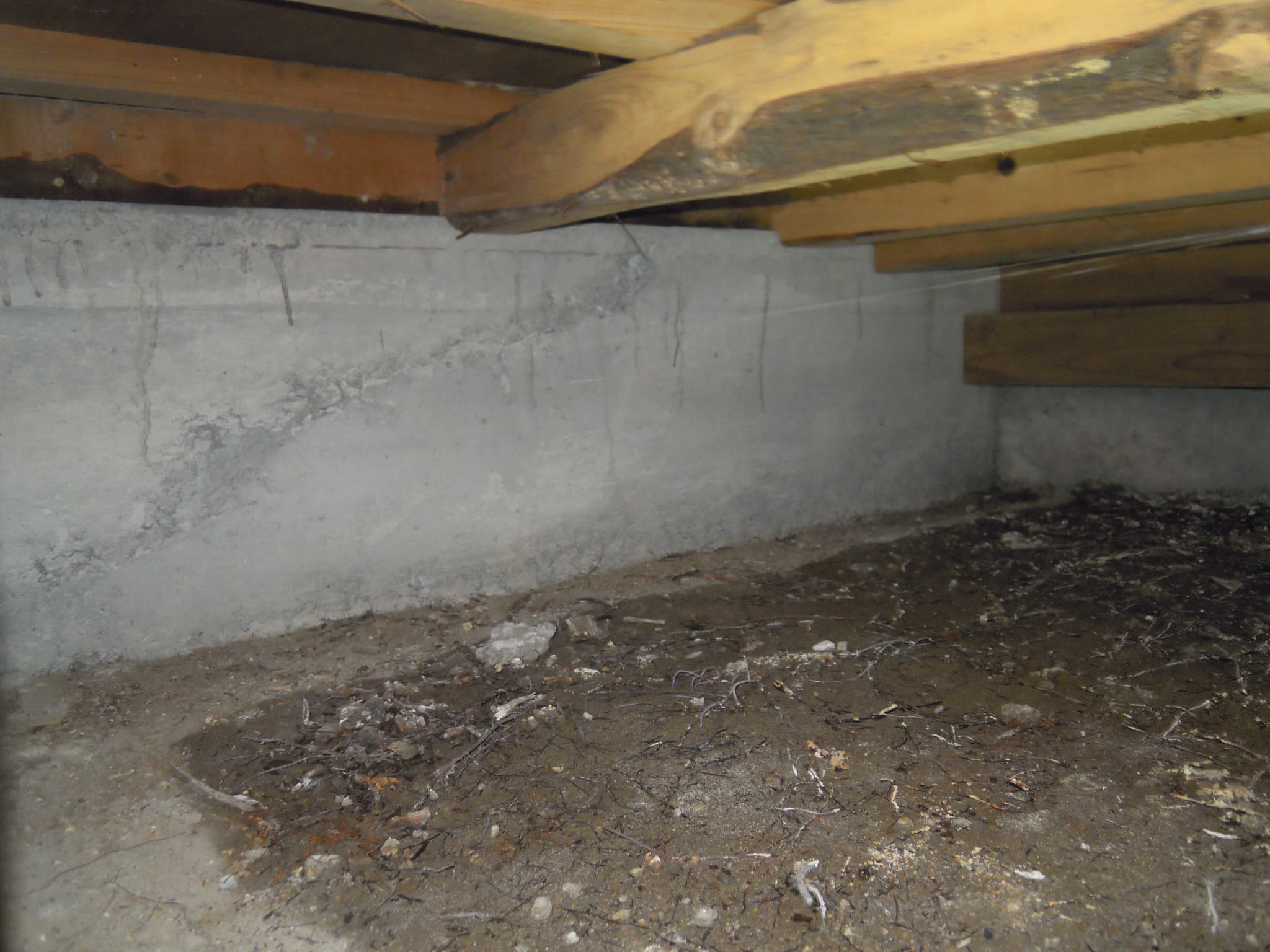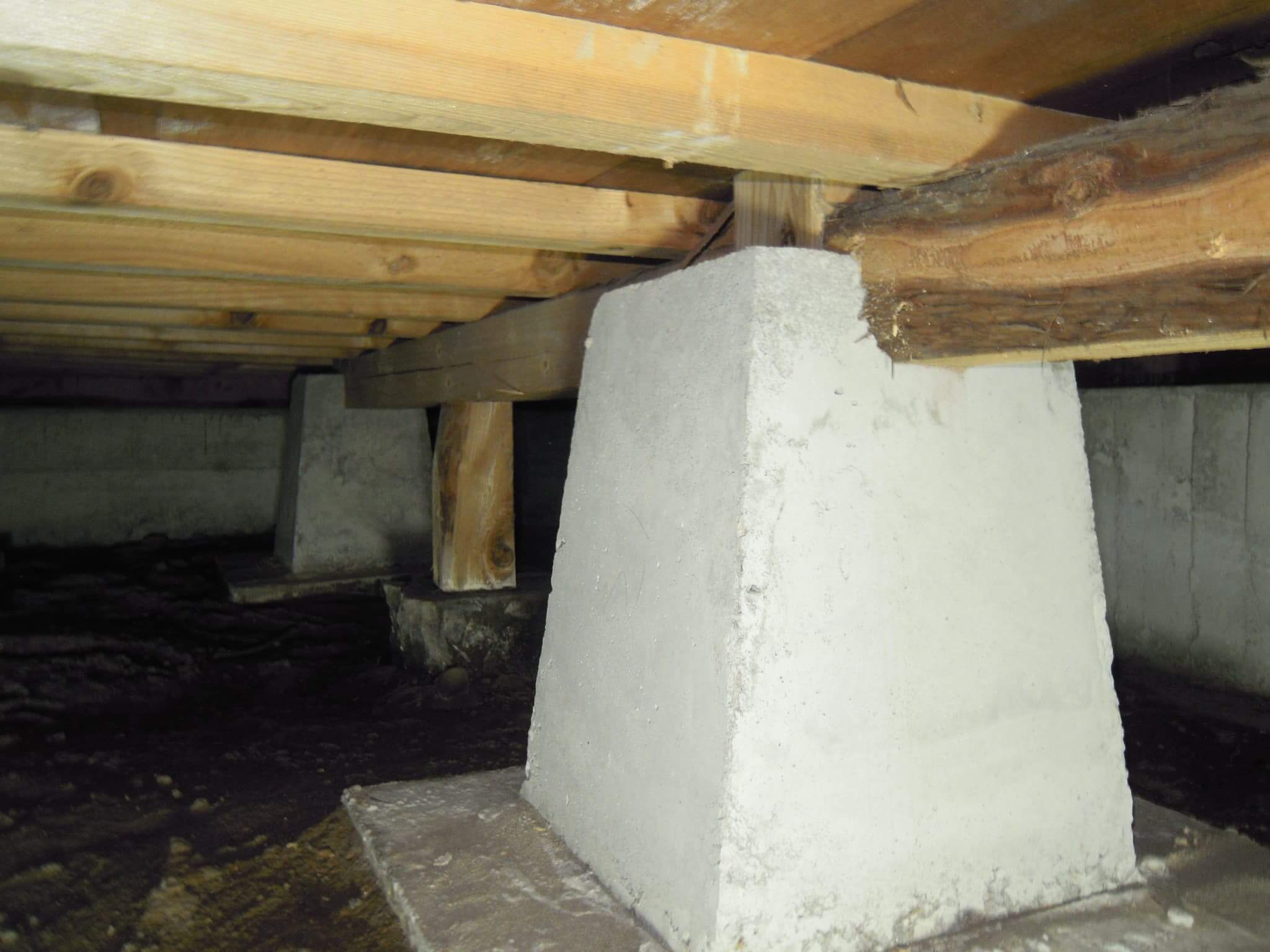 一枚目の基礎の画像は、しっかりと壁の下に基礎がある事例です。これが当たり前の姿ではありますが、昭和40年代よりも前の住宅では、このようなしっかりとした基礎を建物の外周部だけにつくり、中のほうは画像二枚目のように柱を支えるところだけに基礎をつくっている、いわゆる「独立基礎」の形態をとっているものが多いです。これは、耐震診断のときに確実にチェックしなければならないところで、この独立基礎の間の壁を耐力壁にするというのは、それほど耐力があるものが作れません。ですが、診断がおろそかになされれば、こうしたところに平気で壁を作る計画になっていたりもするので、結果的に意味のない壁補強になったりもします。