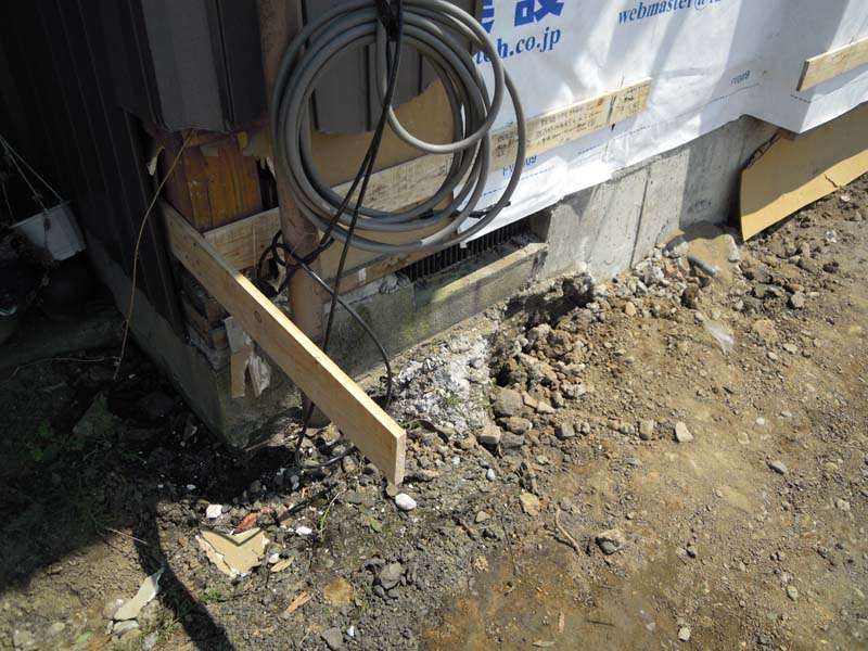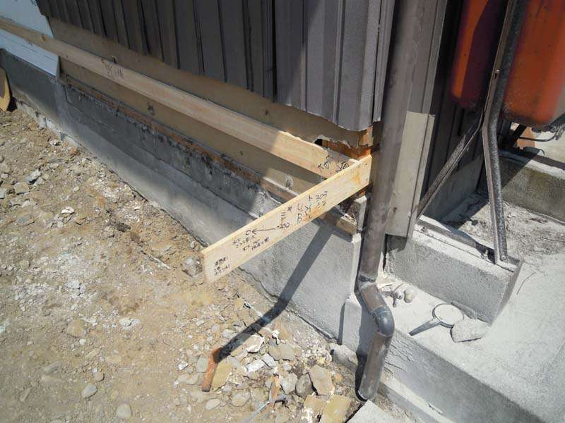 なので、建物の通りをしっかり見定めることが必要になりますし、その証しを現場で示す必要も出てきます。これらの作業を総称して遣り方(やりかた)といいます。特に今回のような既存の建物にちゃんと平行でかつ直角を位置づけるためには、現場での作業も慎重になります。