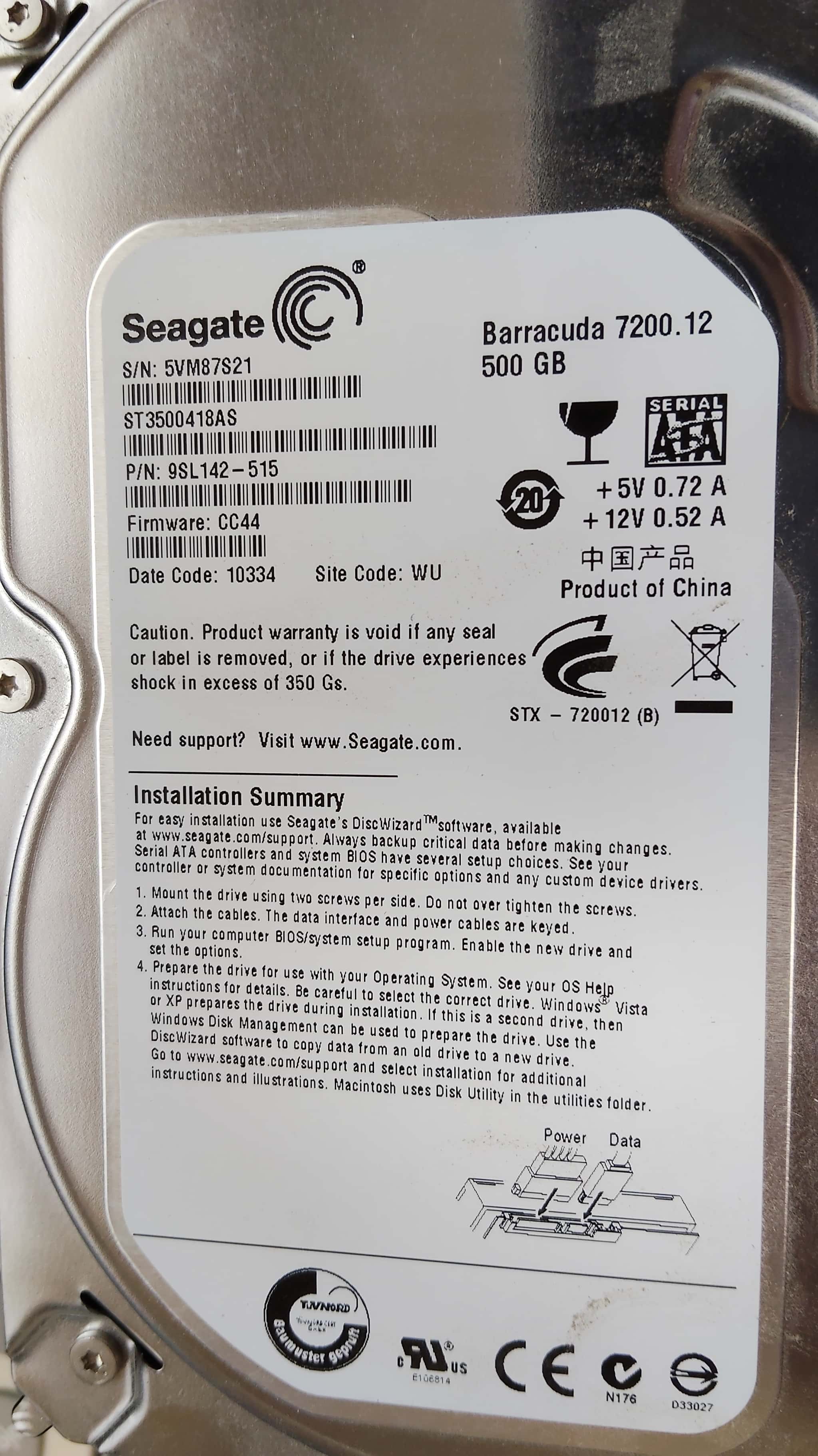 ストレージも、余ってた500GのHDDを使います。実験ですのでわざわざお金かけてストレージを買うことはしませんwww このブログを書いている最中、初期化のランプがまだついたままですので、相当、時間がかかると思われますwww