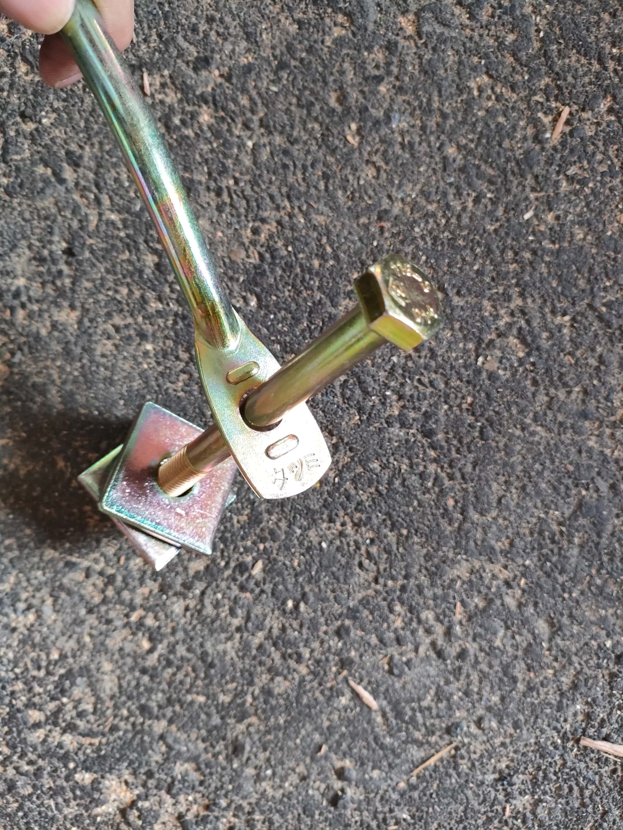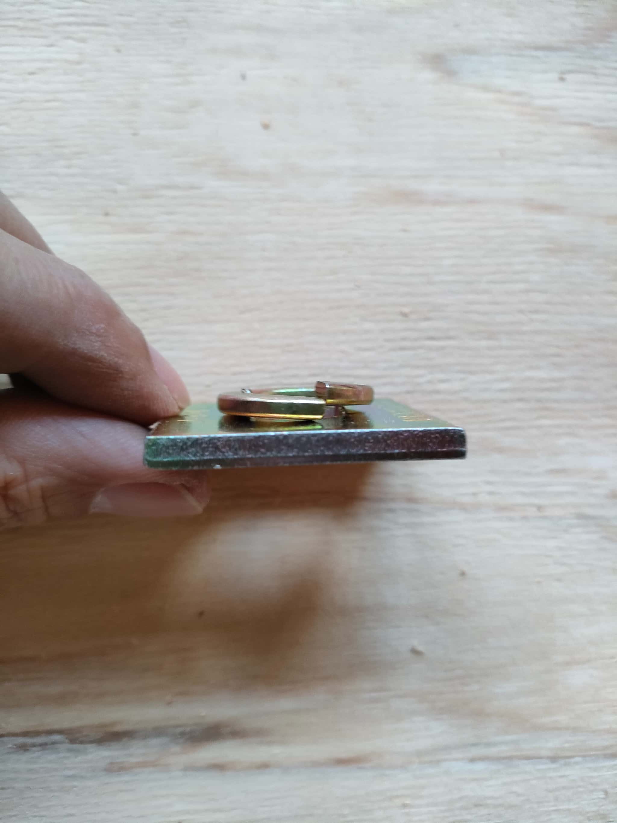 これも組み合わせの仕方でイライラが生じますw 柱面に差すときにナットを外して一枚だけ座金を取り出すようにして、残った座金とボルトの端をもって、差し込むことを想定します。この時、座金の向きを誤ると、ナットを外して2枚とも座金を取り出すことになるのでイライラするわけですw