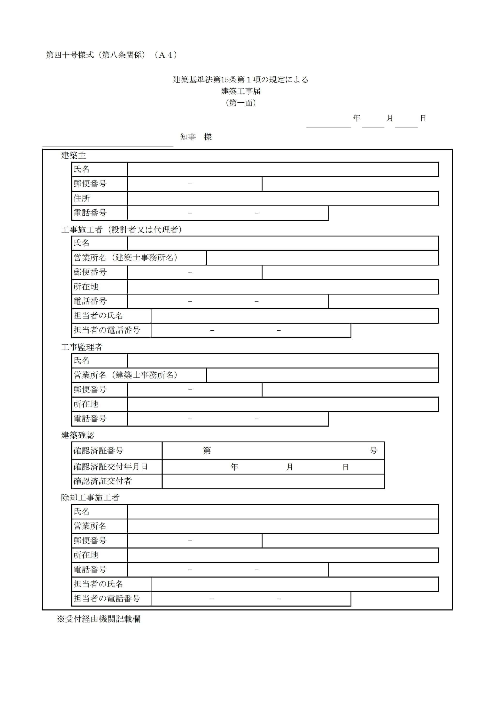 ・建築工事届(第40号様式)