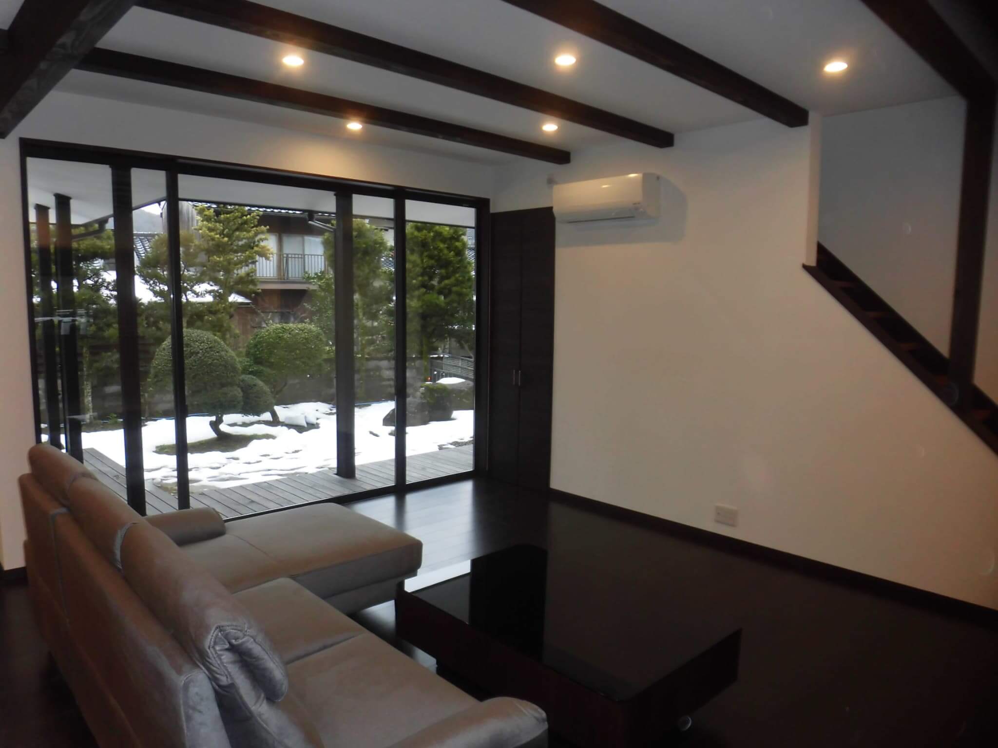 間取りの工夫や、内装や外観を際立たせたりするデザイン的な思考は、建物づくりにおいてすごく楽しみなことです。また便利な設備機器を導入したり、それらがオシャレに取り付けられていたりすることも工夫の一つですし、打合せなどでお客さんとの話しの中で、うまいアイディアが浮かんだりすると、お互いにうれしいものです。でも、デザイン的に凝った造りにするというのは、それだけ内装にコストがかかることも否めません。でも、意匠的な希望を構造的な部分で少し補うことでデザインしてあげると、コストが低く抑えられることがあります。次の画像をご覧ください。