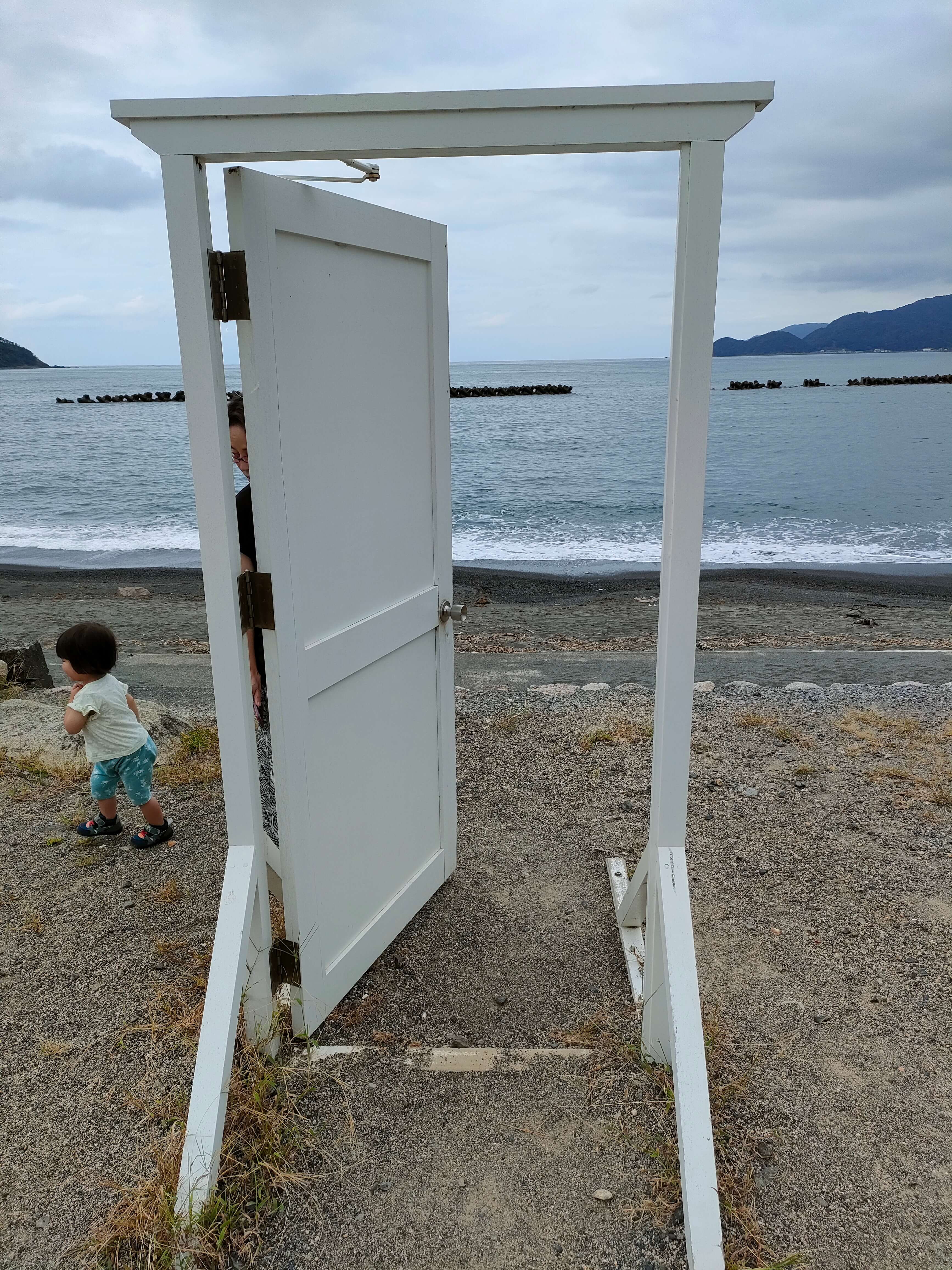 白いのどこでもドアは「未来へツナガルドア」のようですwww どちらも開けても「今の砂浜」でしたw