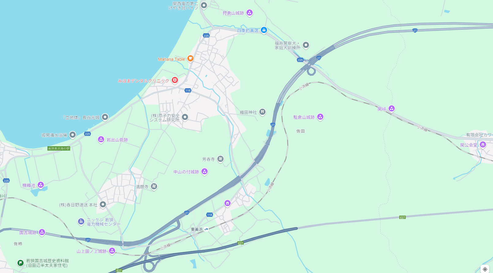 この金山バイパスを通ることが当たり前になってふと疑問に思ったことがありました。そういえば、小さいとき、やたら海沿いを走って若狭、美浜方面に行った記憶なのです。そして、その海沿いの海岸の向こう側には「原発」が見えたものです。さらに「千鳥苑」も若狭、美浜にきたら当たり前にごはんを食べていたところです。ところが自分で車を運転し、道はナビでお任せという感じで嶺南をドライブするようになってから、この景色を見ることができなくなっていたことに気が付きましたw もちろん、バイパスを通るのでやたら早く若狭、美浜につくわけなのですがwww