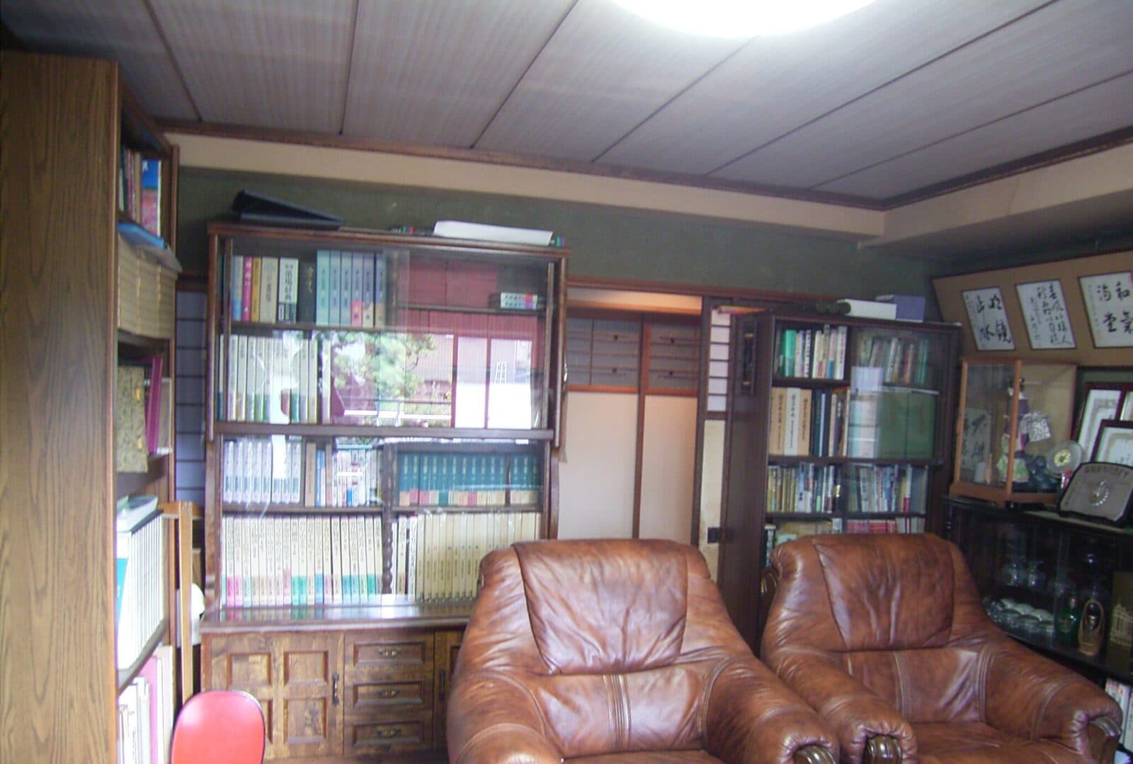 田舎の大きな住宅にはつきものの「応接室」です。冠婚葬祭などを自宅で執り行うことを前提としているような田舎の住宅の場合、和室を田の字に4つ配置し、戸襖で仕切り、仏壇を配置し、「座敷」として設えを構えるような間取りの構成をとることが多く、結果として、家人が過ごす部屋が建物の大きさの割に「ない」ということが多いです。その結果、「応接室」がリビング的なスペースになっていたります。