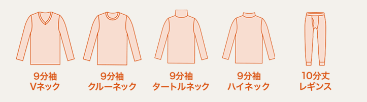 PEACE FITは、夏の冷感下着もあるのですが、防寒のものはPEACE FIT WARMとして販売されてます。このシリーズは、襟首の形状で商品カテゴリーがわかれてますが、下着としてお勧めは、「9分袖クルーネック」です。