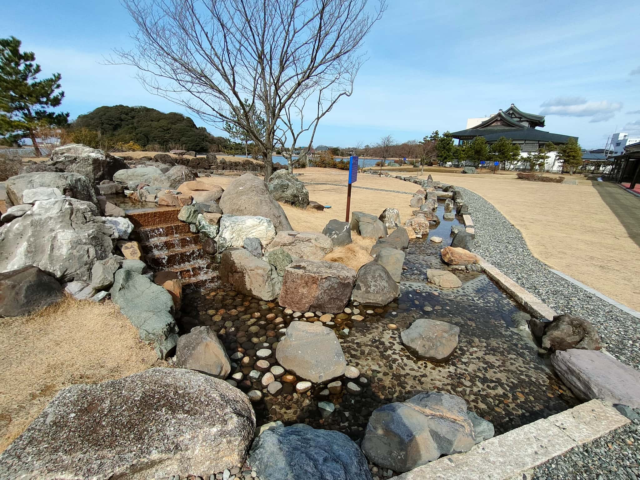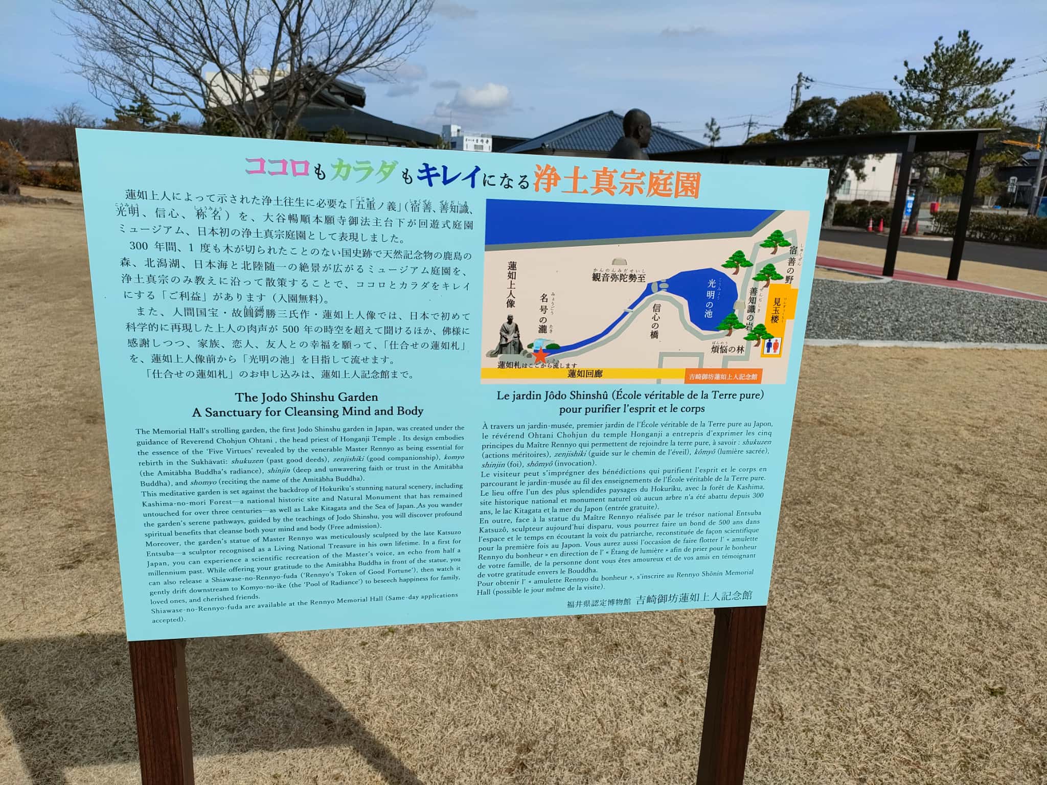 この汀公園の東側には、蓮如上人の歴史的な資料を展示している「蓮如上人記念館」があるのですが、汀公園と続きで「浄土真宗庭園」というものが整備されています。