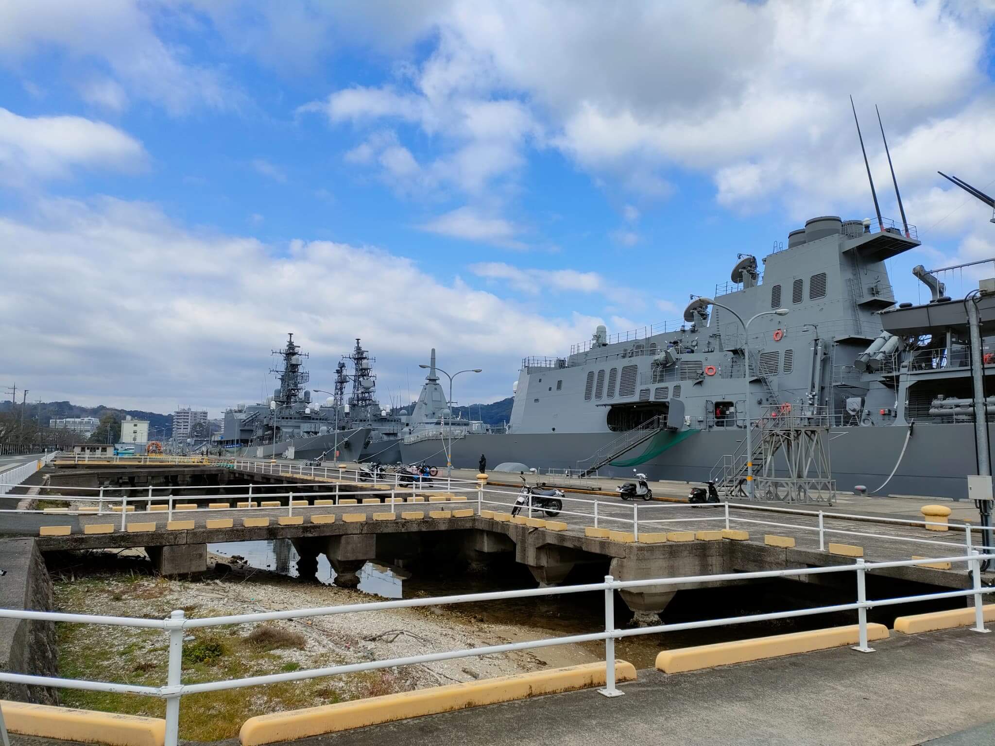 公開見学といっても、展示イベントなどのように大大的にお祭り騒ぎになるわけじゃなくて、係留されている艦艇を「見せる」だけなのですが、上甲板までの乗船を認めてくれるときもあります。また、当然、何が停泊しているか?なんていう情報は公開されませんので、行ってみてはじめて艦艇がわかるという運任せなところがあります。お目当ての艦艇だとラッキーなんですがw でも、意外とその辺も楽しみだったりもします。福井からですと高速でも2時間くらいでいけますので、ドライブがてらに見に行くのは面白いかもしれません。というわけで、本日行ってまいりましたw