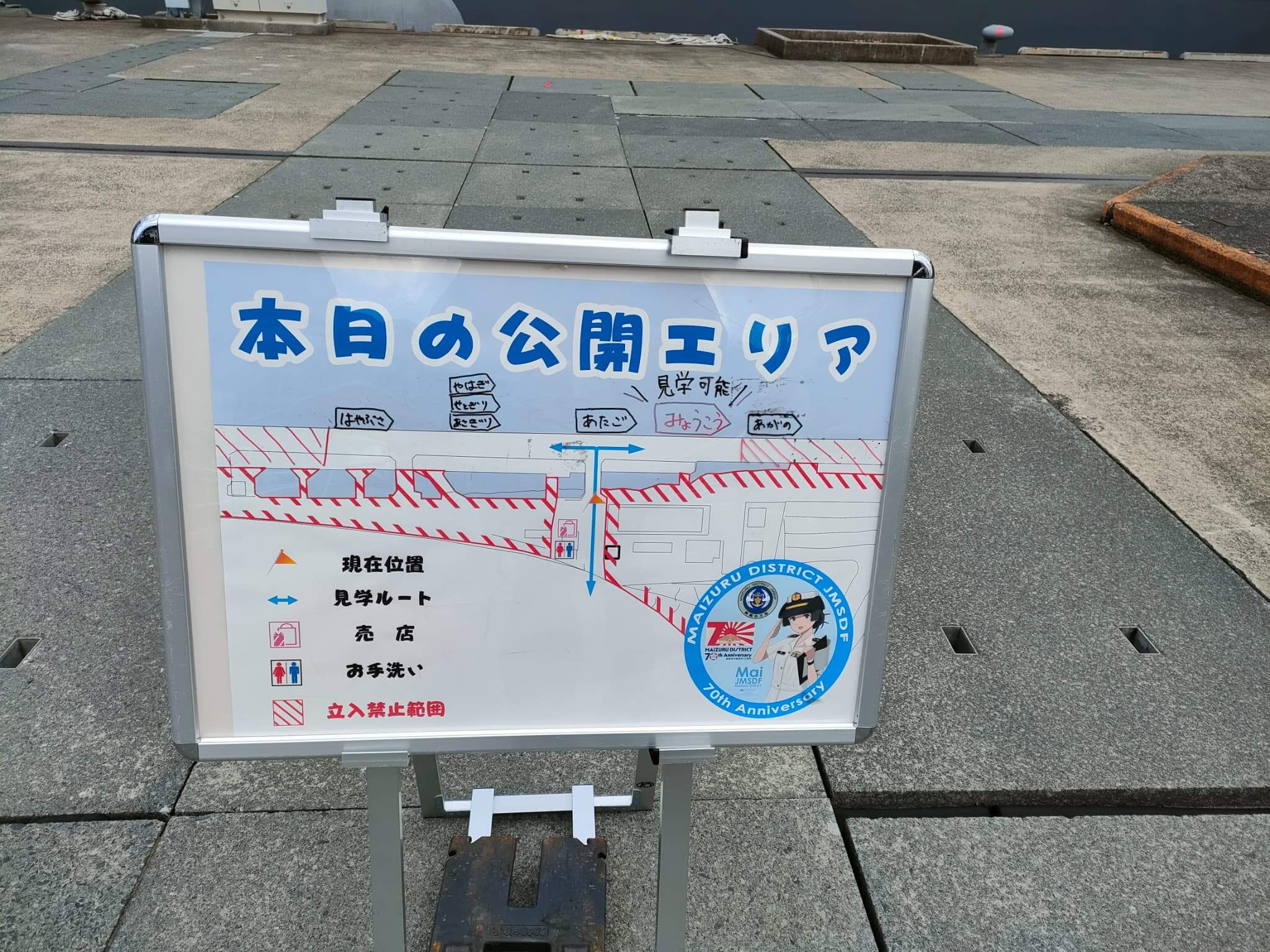 そして「本日の公開」ですが、イージス艦の「みょうこう」、「あたご」をはじめ、FFMとよばれる護衛艦の「あがの」、「やはぎ」も停泊していますので、意外と「当たり」かもと個人的な感想です。さらに、「みょうこう」はこの日、上甲板の乗船可能という!