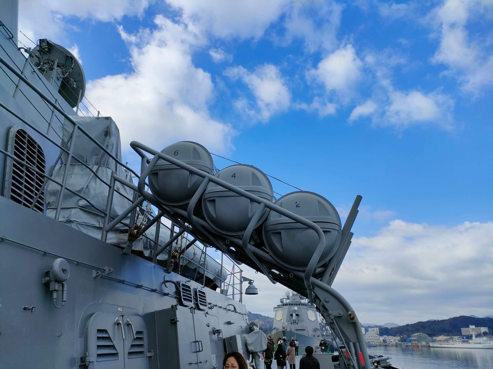 守ってくれている人がいるという実感がこのような装備を見ると感じることができます。隊員の方は日々の訓練でいざ有事!となれば命をかけて任務を遂行することになります。もちろん、イージス艦ですので、その攻撃能力はすさまじいものですが、ハープーンやVLSなどが発射されるようなことがあれば、それはもはや有事という簡単な言葉ではなく、まさに戦争という状況になるわけで、力があるとしてもその力を行使するようなことがないようにと心から願う次第です。