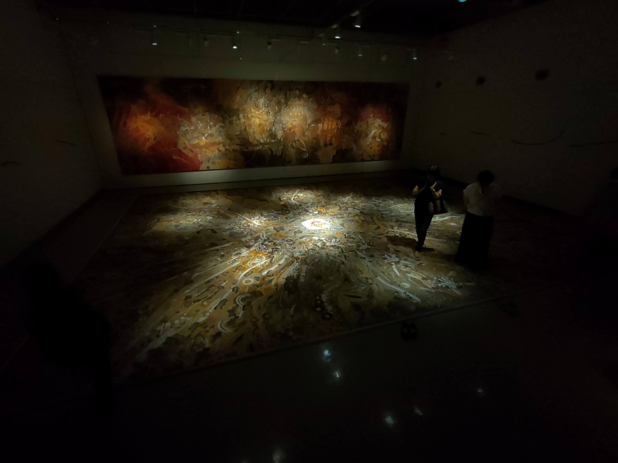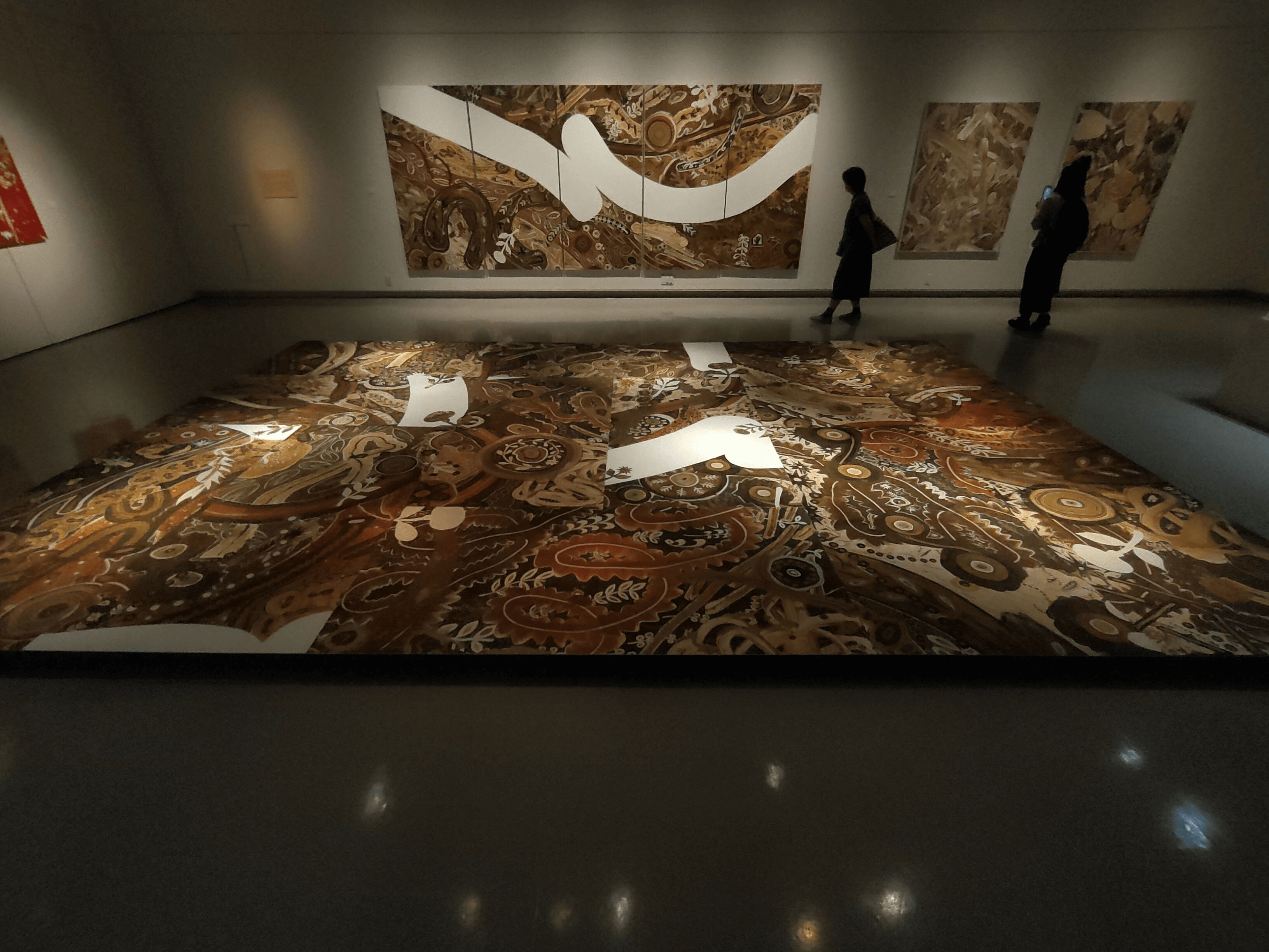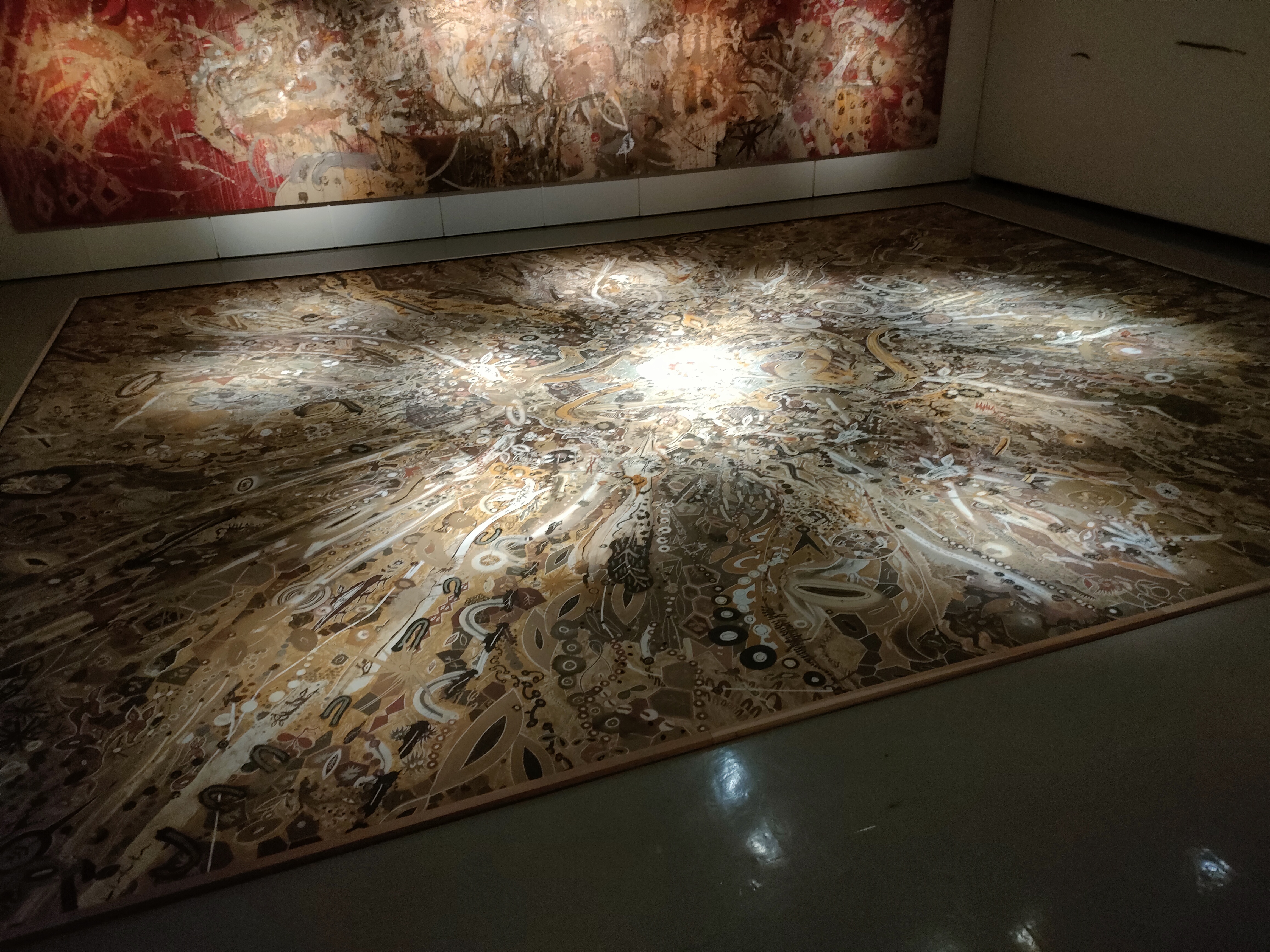 絵の上を人が載ってますよね?「足の裏で絵を感じてほしい」ということで、靴をぬいでこの絵の上を歩いてということなのです。そして、とても面白かったのが次の画像です。