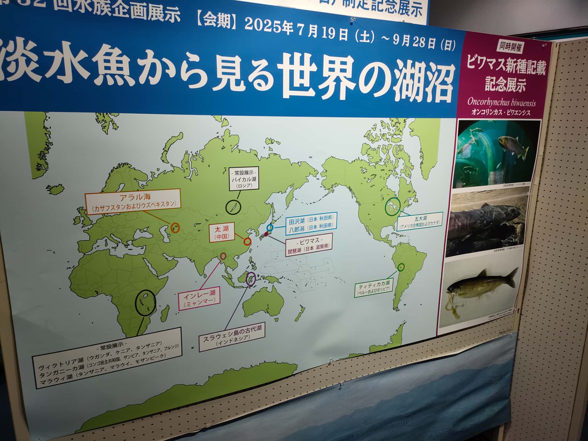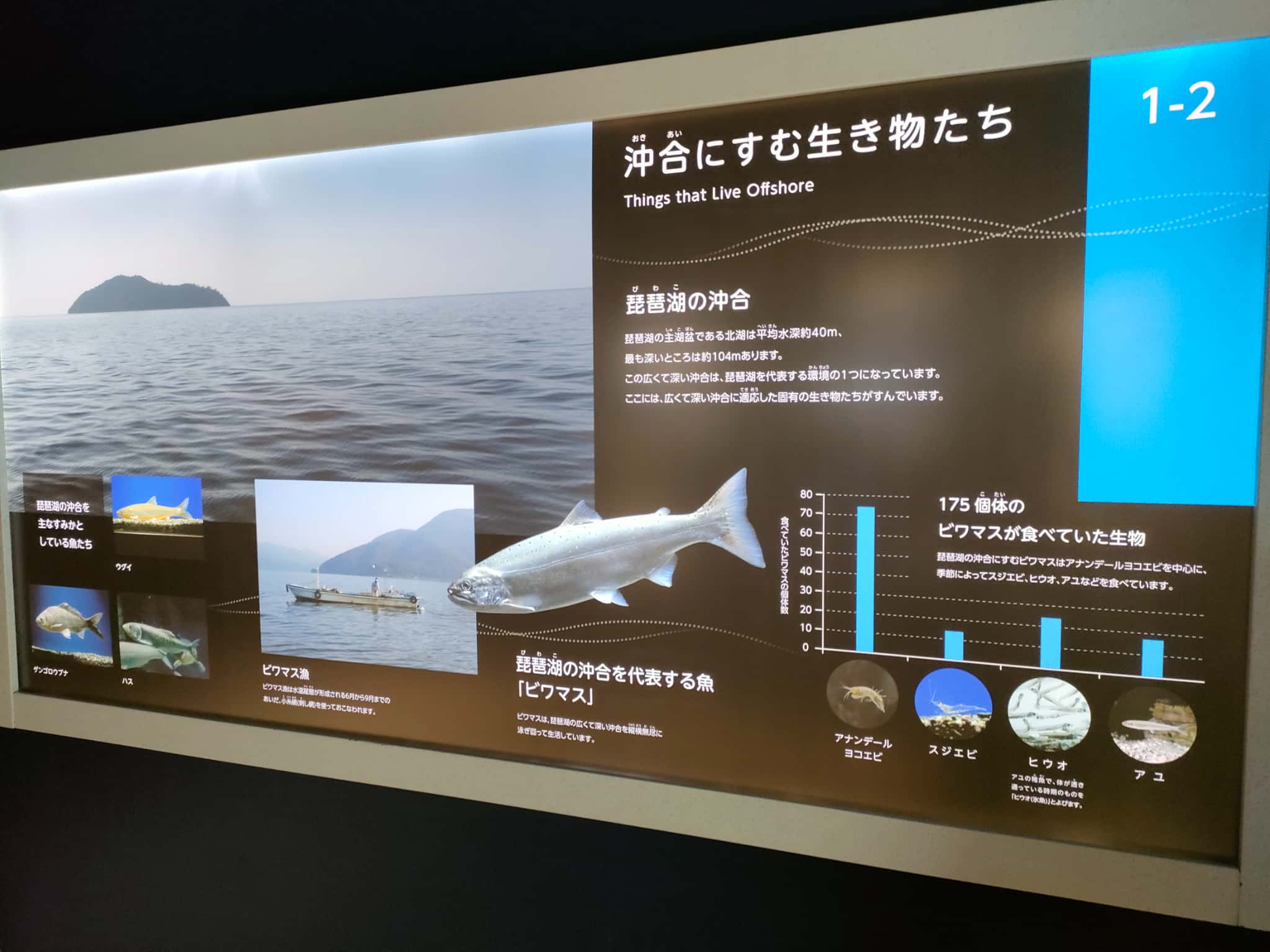 琵琶湖ですが、「古代湖」として100万年以上の歴史をもっている湖なんですが、日本には三大古代湖として「琵琶湖・霞ヶ浦・サロマ湖」があります。古代ですので、湖底の状況なども含め100万年の「生物」の歴史も含まれていて、その展示があるという博物館なわけです。